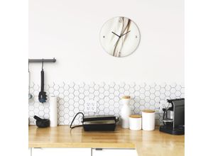 Wohnraumuhren Wohnen Dekoration Raumgestaltung - - Titel: Schön abstrakt braun Welle Design Hintergrund, Copyright: Fotolia LLC / SidorArt, Modellnummer: 1.0025UG. Unsere runde Glasuhr als analoge Funkuhr oder Quarzuhr: wird im Digitaldruck mit einem Motiv auf 4 mm starkes Float Glas: gedruckt. Die exzellente Farbleuchtkraft und strahlende Brillanz unserer hochwertigen UV-beständigen Druckfarben: sorgen dafür, dass die Farben nach vielen Jahren immer noch genauso strahlen wie am ersten Tag. Der rückseitige Druck ist zusätzlich mit einem unauffälligen weißen Schutzanstrich versiegelt. Wir verarbeiten keinen Foliendruck. Die Farben und die Verarbeitung sind frei von Lösungsmitteln, Schadstoffen und Geruch, allergiefrei und daher auch für Kinder- und Schlafzimmer geeignet. Die Zeit wird von einem schwarzen Stunden-, Minuten- und Sekundenzeiger: angezeigt. Die Zeiger werden wahlweise durch ein geräuschloses Funk- oder Quarzuhrwerk: angetrieben. Das lautlose Uhrwerk: der wahlweise analogen Funkuhr oder Quarzuhr hat eine Hersteller von zwei Jahren. Unsere Funkuhr stellt sich automatisch auf Winter- und Sommerzeit um und wird mit dem Zeitzeichensender DCF77 versorgt. Aufgrund von topographischen und meteorologischen Verhältnissen kann der Empfang beeinträchtigt werden. Sollten Sie kein Empfang haben, lässt sich die Uhr auch manuell Einstellen ohne Funksignal. Das Zifferblatt beider Uhren ist gut lesbar. Lediglich eine 1x 1,5V AA Batterie ist im Lieferumfang nicht enthalten. Das ... Diese Braun Classic Funkuhr ist mit 51.00 Euro eine zeitlose Wanduhr mit geräuschlosem Uhrwerk und guter Ablesbarkeit. ![]() ![]() Braun Classic Funkuhr für die mitteleuropäische Zeitzone (DCF/GMT+1) mit geräuschlosem Uhrwerk, leicht ablesbar, 30 cm Durchmesser in Grau, Modell BC17G-DCF