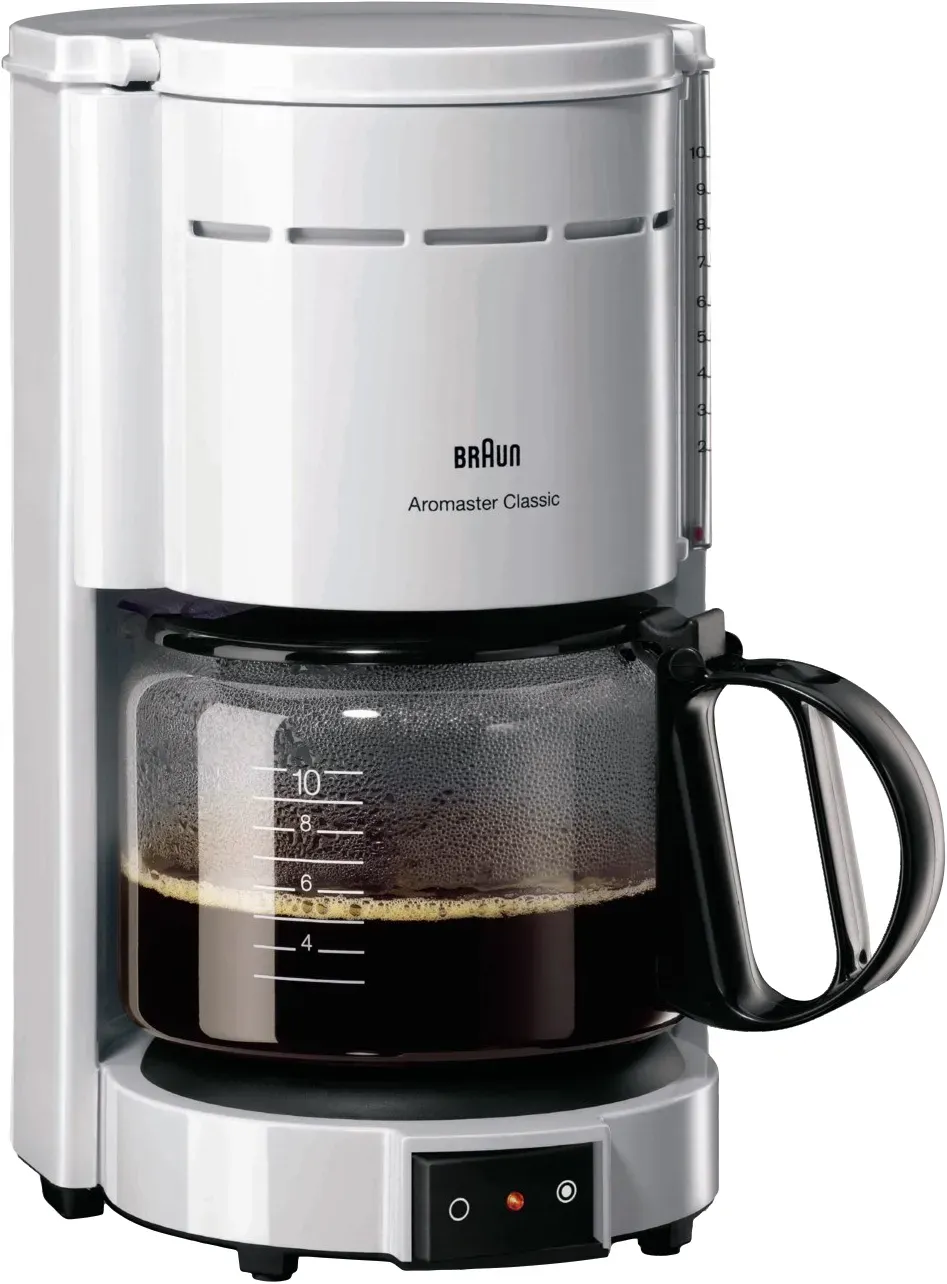 31 Händlerangebote bei billiger.de - Kategorie: Kaffeemaschinen - Braun - EU-Stecker.Eigenschaften:AromaCarafe:- Mit dem AromaCarafe von Braun können Sie Ihren Kaffee mit dem gleichen ausgezeichneten Aroma und Geschmack genießen - selbst lange nach dem Brühen.Dank der speziell geformten und kleinen Abdecköffnung wird die Temperatur im Inneren beibehalten und so immer das gleiche exquisite Aroma gewährleistet.Genießen Sie einen außergewöhnlichen Kaffeegeschmack länger ohne eine neue Kanne brauen zu müssen.Automatikabschaltung:- Zu Ihrer Sicherheit und Bequemlichkeit verfügen die Braun Caf House und Sommelier-Kaffeemaschinen über eine Automatikabschaltfunktion.Es schaltet Ihre Kaffeemaschine nach einer definierten Zeitspanne automatisch aus, so dass Sie sich um andere Dinge kümmern können, ohne sich Sorgen machen zu müssen.Anti-Tropfsystem:- Sie müssen nicht warten.Braun-Kaffeemaschinen ermöglichen es Ihnen, sich jederzeit eine Tasse Kaffee einzugießen.Entfernen Sie einfach den AromaCarafe und der Kaffee aus dem Filterkorb hört auf zu fließen.Platzieren Sie ihn wieder, damit der Rest Ihres frisch gebrühten Kaffees hindurch fließen kann. - GTIN:8021098320001 Dieses Angebot ist das günstigste für eine neue Braun Aromaster Classic KF 47 in Weiß und bietet ein hervorragendes Preis-Leistungs-Verhältnis. ![]() ![]() Braun Aromaster Classic KF 47 weiss