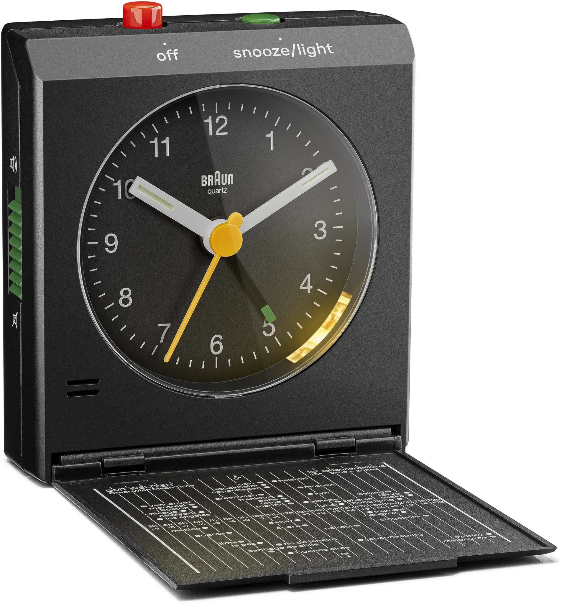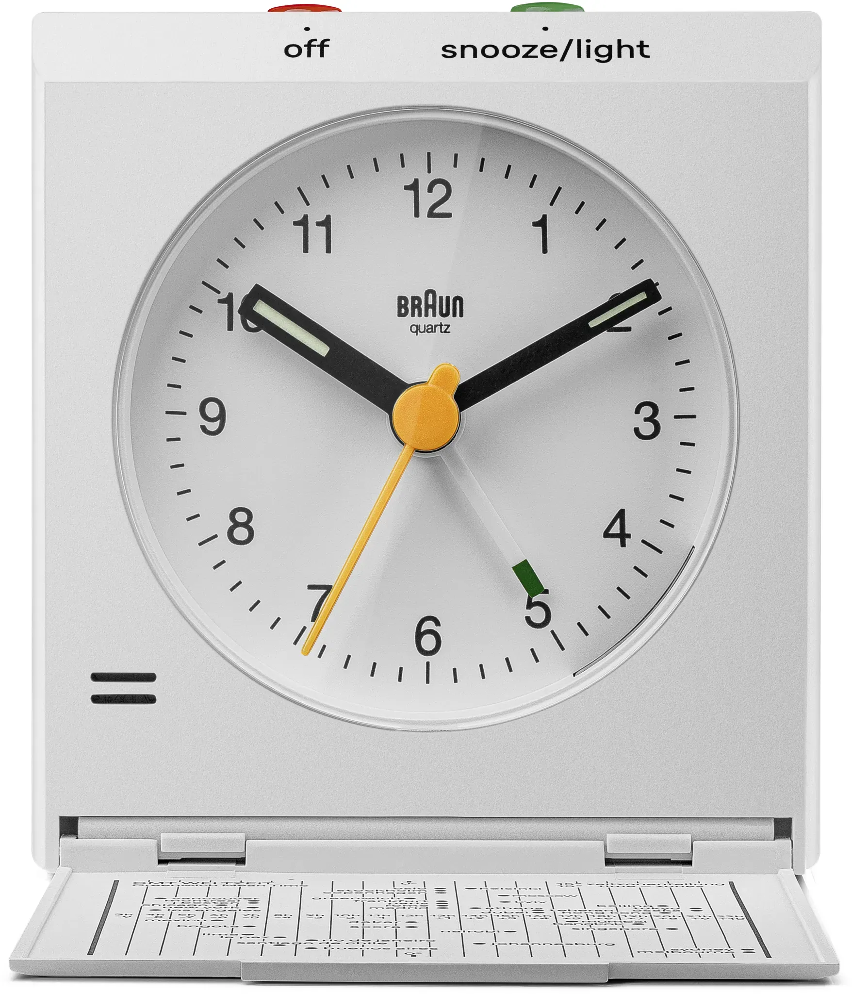 Kategorie: Wecker - Albert Mebus GmbH & Co.KG - GTIN:4007218677051 - Quarz-Klappwecker BC05 Ikonischer roter und grüner Ausschalt-/Schlummerschalter, Zifferblatt leuchtet 5 Sekunden lang Leises Quarzwerk Crescendo-Tonalarm, Objektivschutz mit Weltzeitzonen Beleuchtete Zeiger, Batterientyp erforderlich: AA, Anzahl erforderlicher Batterien: 1 - 34,99 Euro bei mueller.de - gefunden von billiger.de ![]() ![]() Albert Mebus GmbH & Co.KG BRAUN Klapp-Quarzwecker - schwarz