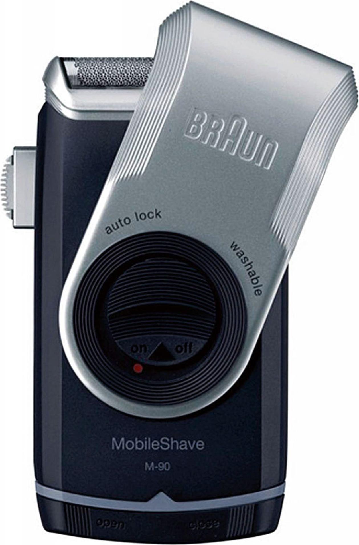 EAN: 4210201649946 - Braun MobileShave M 90Sein kompaktes Design macht den Braun MobileShave M 90 zum idealen Begleiter für die Arbeit, jede Geschäftsreise, Ferien oder einfach über das Wochenende - Der MobileShave passt in jede Tasche und ist ideal für eine schnelle und gründliche Rasur.Mit dem MobileShave M 90 müssen Sie nicht auf den Komfort Ihrer Rasur von zu Hause verzichten, da die extra-breite Scherfolie für eine besonders gründliche und angenehme Rasur sorgt. Er bietet Ihnen einen Präzisons Trimmer zum Formen des Schnurrbartes und der Koteletten - wo immer Sie gerade sind.Eigenschaften:BatterierasiererPerfekt für die mobile RasurSeitlich ausfahrbarer PräzisionstrimmerDrehbare Schutzkappe (gleichzeitig Gehäuseverlängerung)Extrabreite ScherfolieAbwaschbar unter fließendem WasserCa. 60 Rasierminuten bei Verwendung von 2 AA Mignon Batterien Technische Daten Typ: Trockenrasierer Beweglicher Scherkopf: Nein Scherköpfe: 1 Langhaarschneider: Nein Reinigungssystem: Nein Einschaltsperre: Ja Betriebsart: Batteriebetrieb Batterie- / Akkutyp: AA (Mignon) Rasier- / Schneidedauer (Min.): 60 Farbe: silber ArtRasiererStromversorgungBatteriebetriebEigenschaftenabwaschbar unter fließendem WasserSchersystemSmartFoil-Scherfoliensystem (erfasst Haare mit unterschiedlicher Wuchsrichtung)AusstattungPräzisionstrimmerStromaufnahmeBetriebszeit: ca. 60 MinutenHinweise zur Batterieentsorgung Im Zusammenhang mit dem Vertrieb von Batterien oder mit der Lieferung von Geräten, die Batterien ... ![]() ![]() Braun MobileShave - M-90 Herrenrasierer eBay Elektrorasierer für unterwegs Abwaschbar