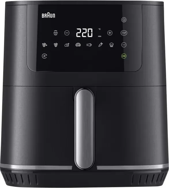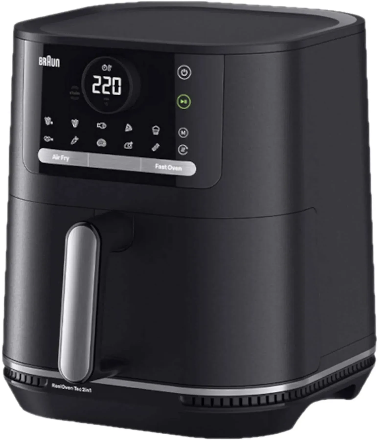 Gewöhnlich versandfertig in 4 bis 5 TagenBraun MultiFry 5 HF5030 Digitale Heißluftfritteuse, 6L Airfryer, 80-220 , 8 Programme, spülmaschinenfester Korb, Touch-Bedienung, 1700W, RealAir-Technologie, Schwarz