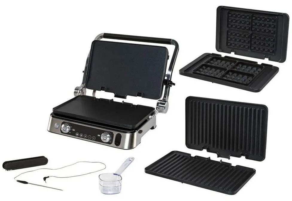 Verfügbarkeit: Sofort verfügbar, Kategorie: Elektrogrills - Braun - GTIN:8021098002549 - Mit der Kontaktgrilleinstellung braten Sie das Grillgut von unten und oben gleichzeitig, die geöffneten Position bietet Ihnen 2 große Kochflächen oder Sie nutzen den Grill als Ofen Die in den Grillplatten integrierten Heizstäbe sorgen für eine gleichmäßige Wärmeverteilung, herausragende Grillergebnisse und reduzieren die Vorheizzeit Die Temperatur der beiden Heizplatten lässt sich individuell einstellen. Somit erzielen Sie optimale Grillergebnisse je nach Grillgut Dieser Kontaktgrill bietet eine Grillfläche, auf der bis zu 12 Burger Patties platzfinden. Darüber hinaus ist er auch perfekt für ein gemütliches Raclette oder ein schmackhaftes Fondue, was ihn zu einem vielseitigen Küchenhelfer macht Mit 250 °C lässt sich das Grillgut scharf anbraten und sorgt für perfekte Röstaromen. So lässt sich das Grillgut perfekt auf den Punkt garen - 305,66 Euro bei haushaltsparadies.de - gefunden von billiger.de ![]() ![]() BRAUN CG - 9167 Multigrill eBay 9 Pro 2200W, Aluminiumguss, 3 Grillpositionen