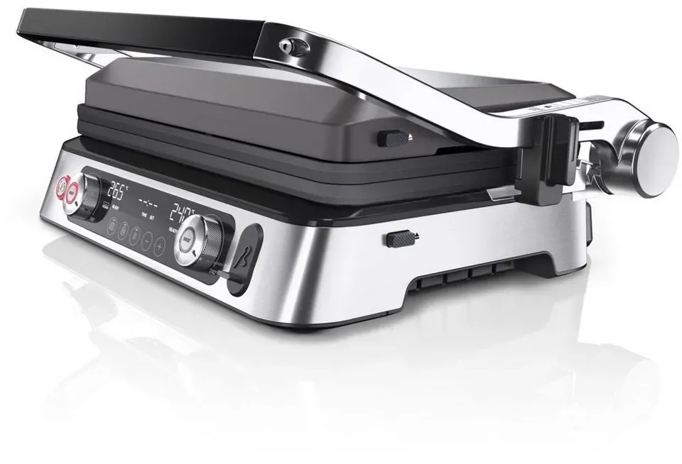 Kategorie: Elektrogrills - Braun - GTIN:8021098002549 - Braun MultiGrill 9 Pro CG 9167 Vielseitiger Kontaktgrill für jeden AnlassEntdecken Sie den Braun MultiGrill 9 Pro CG 9167, den ultimativen Kontaktgrill, der Ihrer Küche vielseitige Möglichkeiten bietet. Mit seinen 3 Grillpositionen Kontakt, BBQ und Ofen erfüllt dieses Gerät alle Wünsche, die Sie beim Grillen haben könnten. Ob für ein schnelles Frühstück, ein herzhaftes Mittagessen oder ein festliches Abendessen, der Braun MultiGrill ist der perfekte Begleiter!Leistungsstarker Grill für köstliche ErgebnisseMit einer maximalen Temperatur von 240 C und bis zu 265 C im Boost-Modus rt dieser Grill, dass Ihre Speisen einfach perfekt zubereitet werden. Egal, ob Sie saftige Burger, knusprige Paninis oder würzige Steaks zubereiten möchten die 2400 Watt Leistung sorgt dafür, dass alles schnell und gleichmäßig gegart wird. Der Temperaturfühler und das Display mit Temperaturanzeige helfen Ihnen, die optimale Garstufe genau im Blick zu behalten.Einfache Bedienung und clevere AutomatikprogrammeDer Braun MultiGrill 9 Pro CG 9167 bietet eine Benutzerfreundlichkeit, die keine Wünsche offenlässt. Mit Automatikprogrammen für Hamburger, Panini und ein Warmhalteprogramm können Sie mühelos die perfekten Ergebnisse erzielen. So sparen Sie Zeit und schaffen trotzdem köstliche Mahlzeiten für Familie und Freunde.Hochwertige, spülmaschinenfeste MaterialienDie Grillplatten sind aus Aluminiumguss gefertigt und nicht nur robust, sondern auch ... Dieses Angebot für den CG 9167 ist eine gute Wahl für Kunden, die einen Kontaktgrill in silberner Ausführung bevorzugen. ![]() Braun Multigrill 9 Pro CG 9167 Kontaktgrill silber
