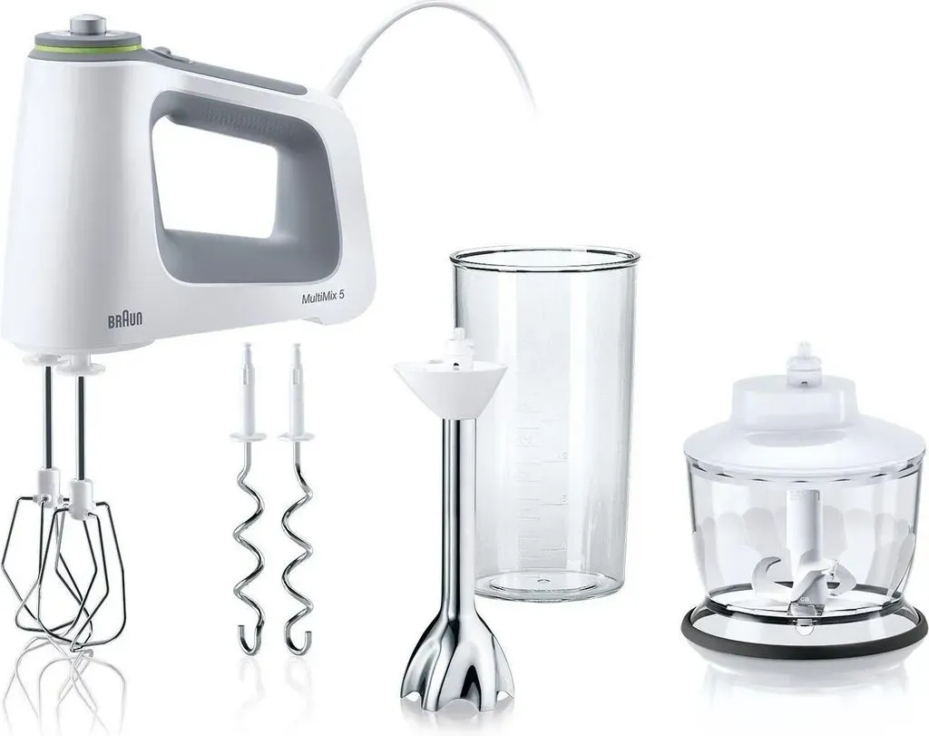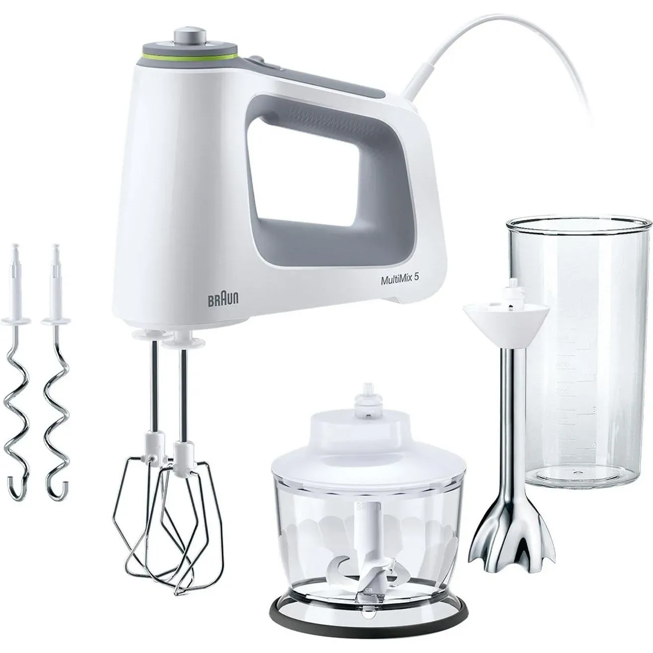 Auf Lager Versand durch AmazonBraun MultiMix 5 HM 5137 Handmixer ? Handrührgerät mit stufenloser Geschwindigkeitsregelung, inkl. Schneebesen, Knethaken, Pürierstab, Zerkleinerer und 600 ml Mix- und Messbecher, 750 Watt, weiß