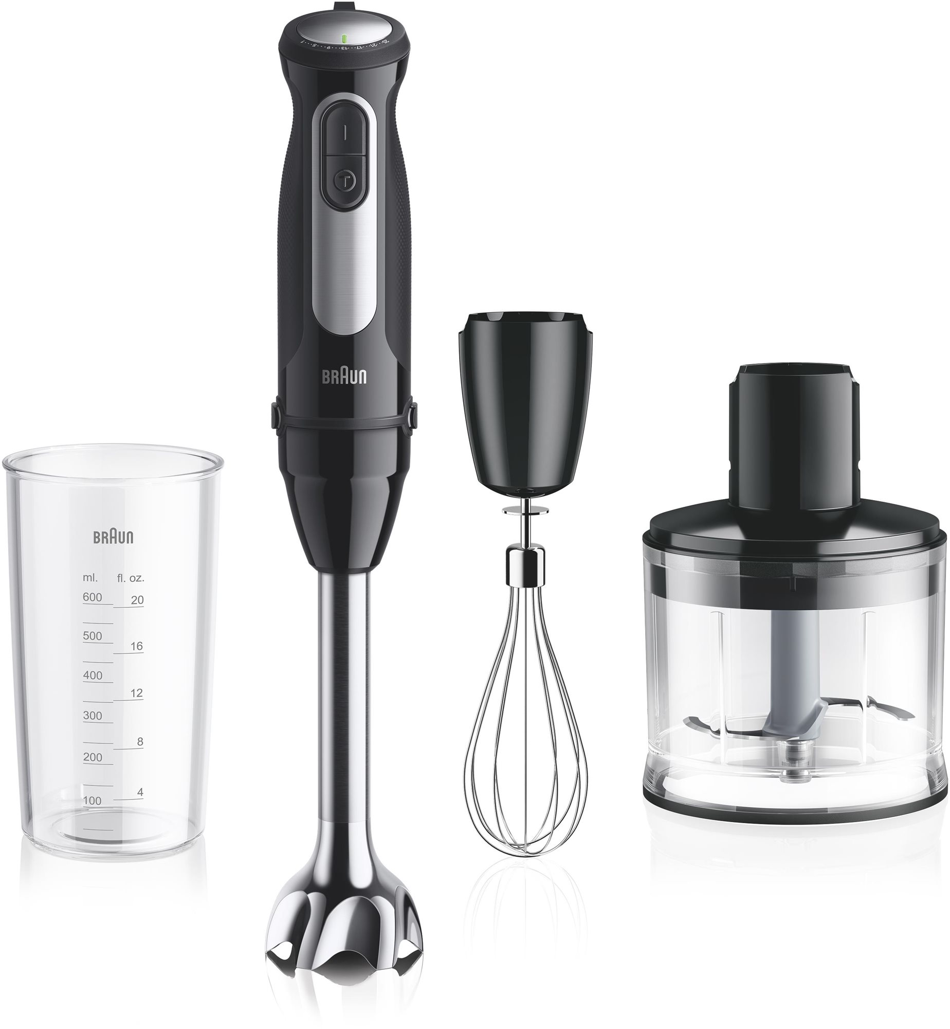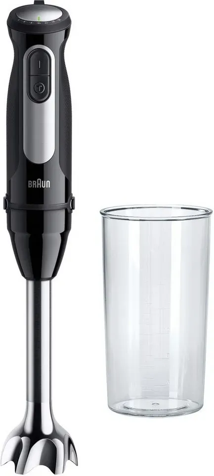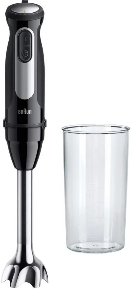 Kategorie: Mixer - Braun - GTIN:8021098003997 - Allgemein Weitere Vorteile , EasyClick System Plus: Schnelleres Anbringen von EasyClick Plus-Zubehör dank größerer, einfacher zu bedienender Tasten und des intuitiven geraden Anschlusses. Ergonomischer Handgriff mit Gripmaterial Spülmaschinengeeignet, exkl. Motor und Getriebeteile inkl. 600 ml Mix- und Messbecher, Technische Daten Leistung , 1000 W, Kabellänge , 1,2 m, Farbe & Material Farbe , Schwarz/Edelstahl, Material Gehäuse , Edelstahl Kunststoff, Maße & Gewicht Höhe , 20,8 cm, Breite , 6,8 cm, Tiefe , 6,2 cm, Gewicht , 0,9 kg, Programme & Funktionen Funktionen , Turbostufe, Anzahl Geschwindigkeitsstufen , 25, Ausstattung Mitgeliefertes Zubehör , Bedienungsanleitung Mix- und Messbecher, Product Compliance WEEE-Reg.-Nr. DE , 75339488, - 59,00 Euro bei OTTO - gefunden von billiger.de Dieses Stabmixer-Set für 60.99 Euro bietet bereits eine gute Auswahl an Zubehör für vielseitige Anwendungen. ![]() ![]() Braun MQ55254M Stabmixer-Set MultiQuick 5 Pro, schwarz