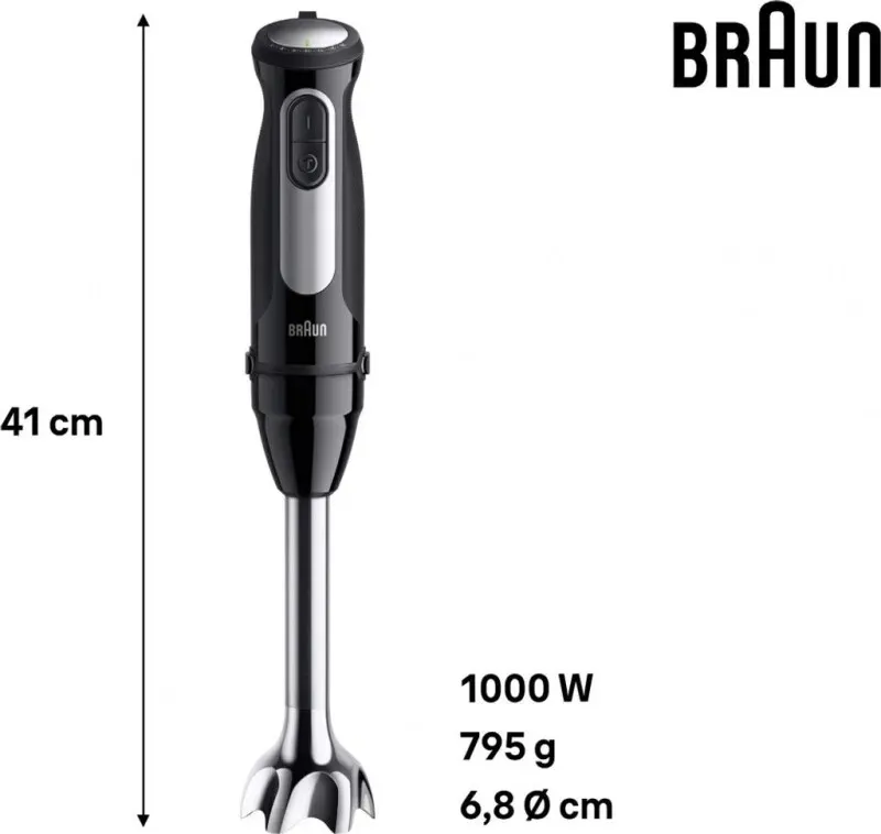 Kategorie: Mixer - Braun - GTIN:8021098004536 - Leistungsstark und leise: Der 1000-W-Motor ist leistungsstark, leise und kompakt, um Zuverlässigkeit und Leistung für die schnellsten und besten Lebensmittelverarbeitungsergebnisse für alle Ihre Rezepte zu gewährleisten POWERBELL PLUS Technologie: Patentierte manuelle Mischtechnologie mit einem erweiterten Schneidebereich, der hilft, Lebensmittel in Sekunden zu mischen; die Splash Control-Technologie verhindert Spritzer, um Sie und Ihre Küche makellos zu halten 25 Geschwindigkeiten + Turbo-Einstellungen: Das Rad mit variabler Geschwindigkeit mit einer Hand hat 25 verschiedene Geschwindigkeiten zur Auswahl. Die präzise Geschwindigkeitseinstellung sorgt für maximale Präzision beim Mixen von Smoothies, Saucen und Saucen EasyClick Plus-System: Zwei Tasten und eine Bewegung zum schnellen und einfachen Wechseln aller EasyClick Plus Zubehörteile zum Kochen und Backen Einfach zu bedienen: Der ergonomische Griff ist so konzipiert, dass er an der Oberseite dünner ist, für mehr Kontrolle und bessere Handhabung in jeder Kochsituation. Darüber hinaus ist der 600 ml Plastikbecher BPA-frei und verfügt über Markierungen von ml und fl oz - 53,45 Euro bei Amazon Marketplace Kitchen - gefunden von billiger.de Für 55 Euro erhalten Sie hier einen reinen Stabmixer, der sich auf die Kernfunktionen konzentriert. ![]() ![]() Braun MQ 55001 M MultiQuick 5 Pro (schwarz/edelstahl) Stabmixer