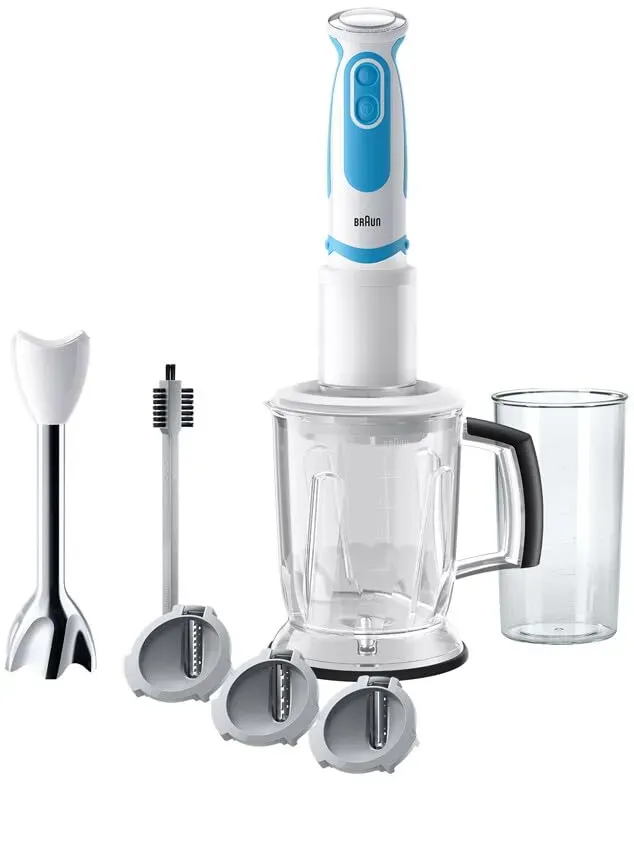 Verfügbarkeit: Gewöhnlich versandfertig in 7 bis 8 Tagen - Kategorie: Mixer - Braun - GTIN:8021098774880 - VIELSEITIGER KüCHENHELFER: Mit dem praktischen EasyClick-System wechseln Sie bequem und je nach Bedarf im Handumdrehen zwischen den passenden Zubehörteilen, wie Pürierstab, Schneebesen und Kartoffelstampfer OPTIMALE ERGEBNISSE: Das Küchengerät verspricht jederzeit feinste Pürierergebnisse €“ PowerBell Plus sorgt für einen erweiterten Schneidebereich und zerkleinert so selbst ganze Lebensmittel in Sekunden SPLASHCONTROL-TECHNOLOGIE: Der Pürierer liegt ausgezeichnet in der Hand und hat zudem ein praktisches Spritzschutz-Design, das eine saubere Küche, ohne lästiges Putzen nach der Küchenarbeit, verspricht LEISTUNGSSTARK MIT VOLLER POWER: Der kraftvolle 1000 Watt Zerkleinerer bietet mit 21 Geschwindigkeiten und der Turbo-Funktion absolute Präzision beim Pürieren und Zubereiten von Saucen, Smoothies und Desserts LIEFERUMFANG: 1 x MultiQuick 5 Vario MQ 5207WH Stabmixer in Weiß mit Pürier-, Schneebesen- und Kartoffelstampferaufsatz sowie 600 ml Mixbecher von Braun - 69,59 Euro bei Amazon Marketplace Kitchen - gefunden von billiger.de Ein solides Stabmixer-Modell mit Messbecher und Turbofunktion zu einem guten Preis. ![]() ![]() Braun Stabmixer Multiquick 5 Vario Fit MQ5260 WHBL Stabmixer 0X22111348, mit Messbecher, mit Mixbecher, Turbofunktion
