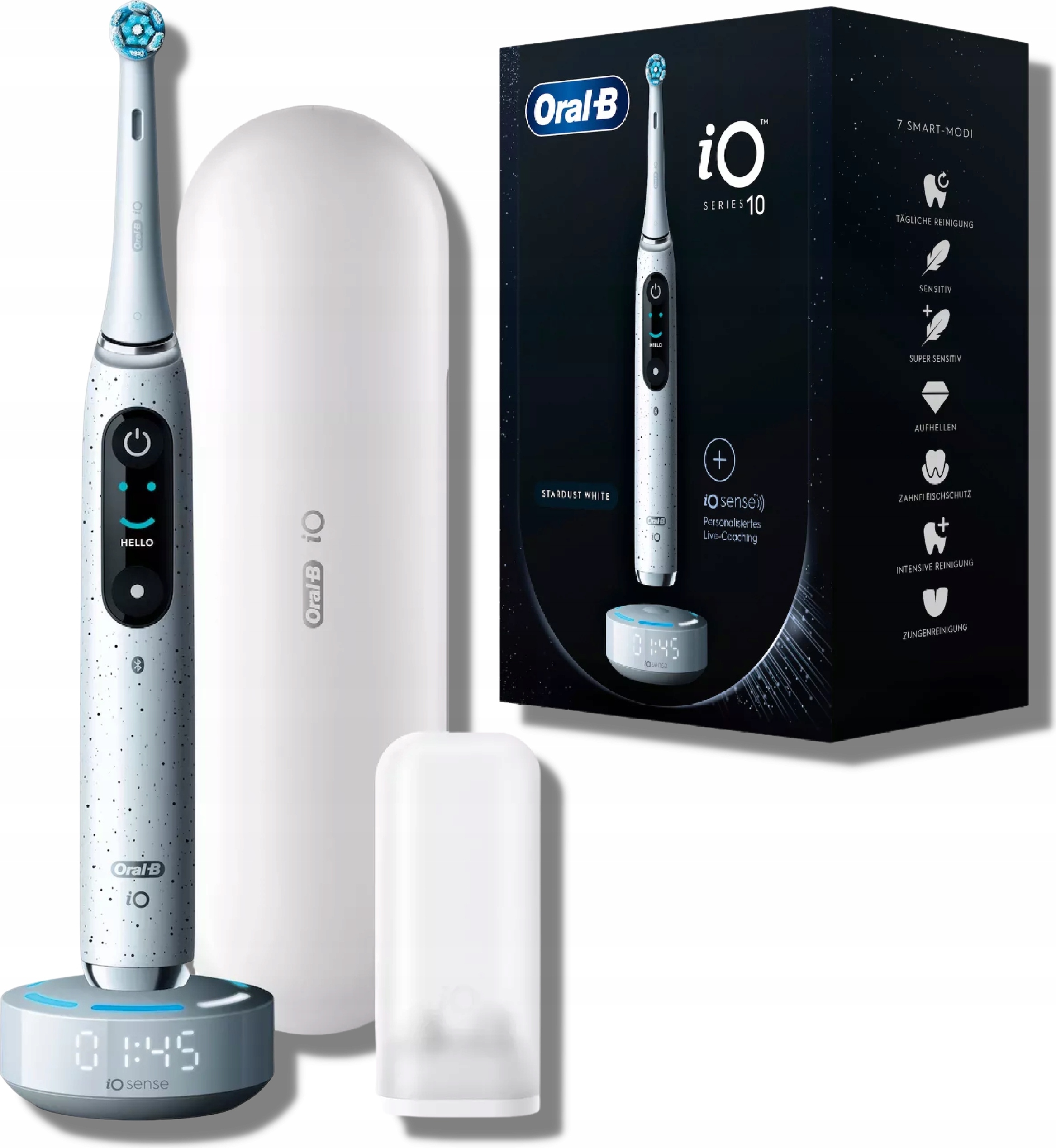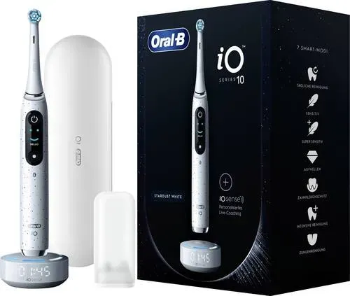 Die Zahnbürste wird oft als Oral-B iO Series 10 oder Braun Oral-B iO Series 10 bezeichnet. 'Braun' ist der Hersteller, 'Oral-B' die Marke. Beide Namen tauchen in der Suche auf. Die iO Series 10 ist in den Farben Stardust White und Cosmic Black erhältlich. Die Funktionen sind identisch, nur das Design unterscheidet sich. Die iO Series 10 benötigt spezielle iO-Bürstenköpfe (nicht kompatibel mit älteren Oral-B-Modellen). Die Ladestation ist smart und kann als Reiseetui genutzt werden. Sie ist für 100-230 Volt ausgelegt, ideal für Reisen. ? Beliebte Produktmerkmale: