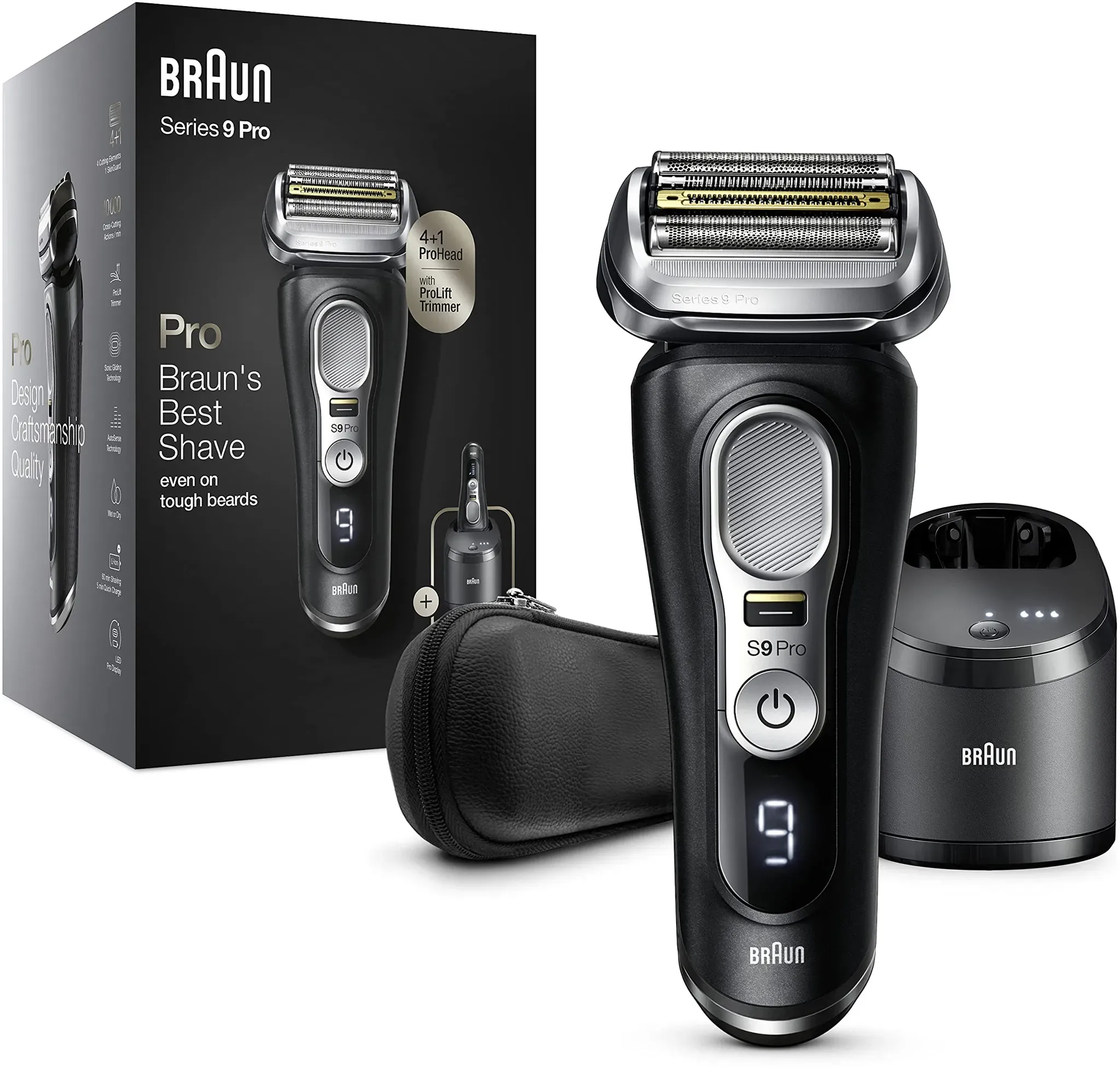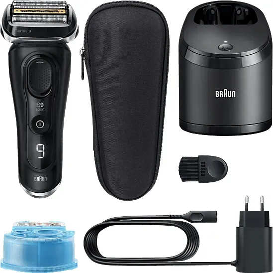Zustand: Neu - Folienrasierer Folienrasierer für Herren - Braun Procter & Gamble - 9557s 7500435218092 - EAN: 7500435218092 - 2-in-1-Rasiersystem: Erhalten Sie die bisher gründlichste Rasur (nur im Vergleich zur Braun Series 9 Pro+ Rasur getestet) bei ultimativem Hautkomfort mit dem Braun Series 9 Pro+ und ProComfort Aufsatz zur Rasurvorbereitung Mühelose Rasurvorbereitung: Zur Vorbereitung auf die elektrische Rasur einfach den ProComfort Aufsatz anbringen, um mittels Mikrovibrationen Haare aufzurichten und aus der Haut herauszumassieren Eine glatte Rasur in weniger Zügen (nur im Vergleich zur Series 9 Pro+ Rasur getestet): Der Rasierkopf von Braun mit 5 synchronisierten Rasierelementen sorgt für eine gründliche und 0,00mm hautnahe Rasur Besonders langlebig, über Jahre hinweg: Der Series 9 Pro+ wird komplett in Deutschland hergestellt und ist 100 Prozent wasserdicht; Ein leistungsstarker Li-Ionen-Akku mit 60 Minuten Laufzeit; Für Trocken- und Nassrasur geeignet Ultimative Präzision, selbst bei schwierigen Haaren; Der integrierte Precision ProTrimmer mit Klingen aus Chirurgenstahl sorgt für maximale Effizienz beim Trimmen von Schnurrbart, Koteletten sowie Härchen unter der Nase - bei Amazon.de Dieser Rasierer bietet eine gute Balance zwischen Preis und Leistung, ideal für Nutzer, die keine Reinigungsstation benötigen. ![]() ![]() BRAUN 9510S Rasierer Series 9 Schwarz (Active Quattro Head, Reinigungsstation: Nein)