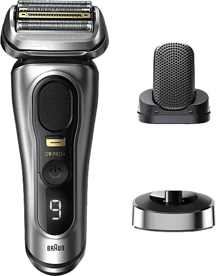 ![]() ![]() Braun Series 9 Pro+ Rasierer Herren Elektrisch, Elektrorasierer mit 5 Pro Rasierelementen, ProComfort Aufsatz, 2-in-1-System, Ladestation, 60 Min Laufzeit, Made in Germany, 9557s, Silber