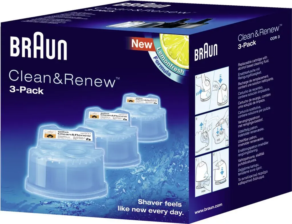 Kategorie: Rasierzubehör - Braun - GTIN:4987176176677 - Braun 3-in-1 ShaverCare Reinigungskartuschen für Reinigungsstationen - Originalkartuschen - Reinigt Rasierer 10x besser als Wasser, Rasierkopfreiniger, Entfernt Haar- und Hautpartikel - Packung mit 2 - 11,71 Euro bei Joybuy - gefunden von billiger.de Dieses 2er-Pack ist eine preisgünstige Option für den Einstieg oder gelegentlichen Gebrauch. ![]() 2 BRAUN Clean Renew CCR 2 Reinigungskartuschen für Rasierer