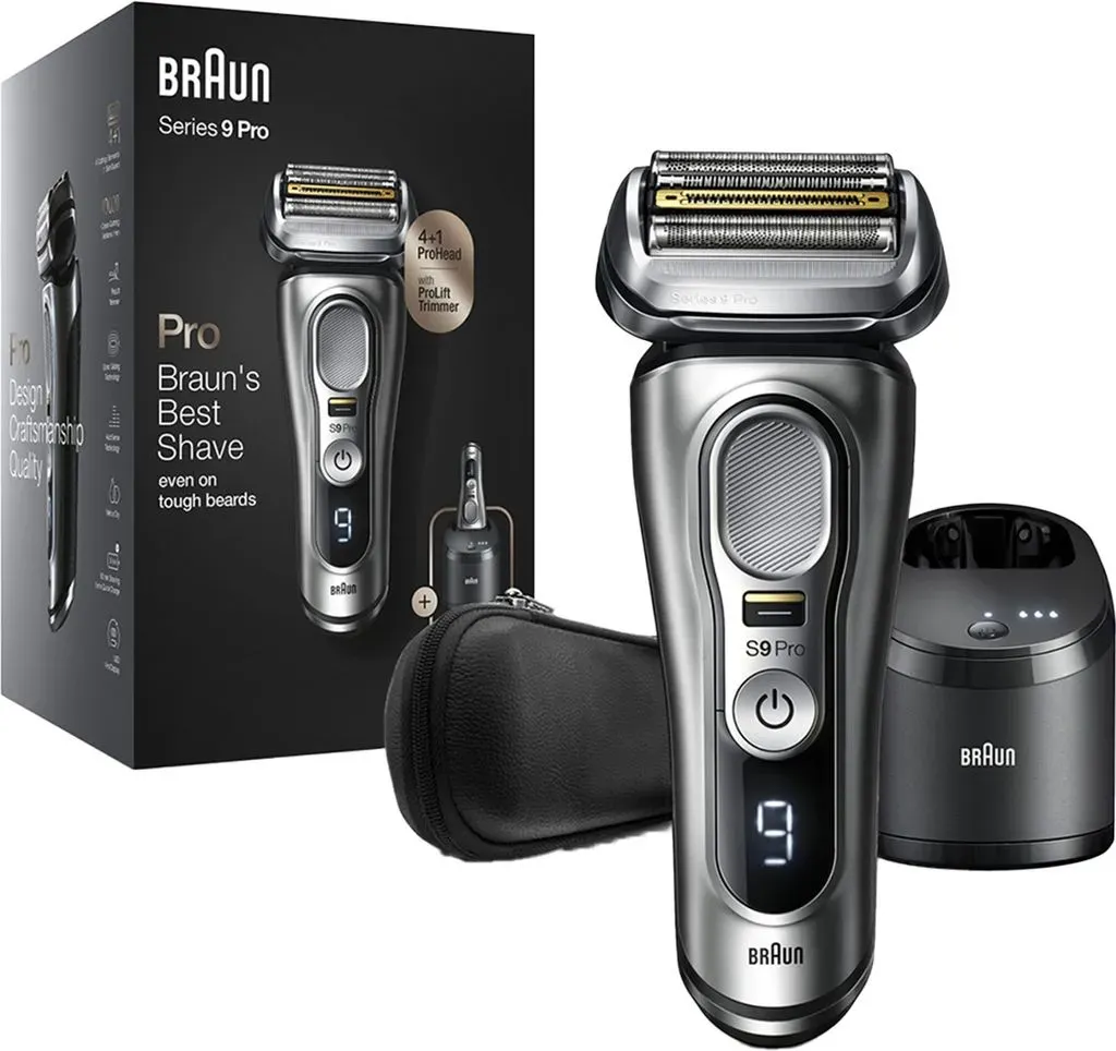 Verfügbarkeit: 3 Werktage - Kategorie: Elektrische Rasierer - Braun - GTIN:4210201394099 - Höchste Effizienz und Sanftheit Der Braun Series 9 Pro steht für höchste Effizienz in der Welt der Elektrorasierer. Ausgestattet mit dem neuen Pro-Kopf, bietet er eine gründliche Rasur für jeden Barttyp, von einem 1-Tage-Bart bis hin zu einem 7-Tage-Bart. - 284,04 Euro bei netto-online.de - gefunden von billiger.de Ein sehr gutes Preis-Leistungs-Verhältnis für einen Series 9 Pro mit Reinigungsstation und ProLift Trimmer. ![]() ![]() Braun Series 9 Pro Premium Rasierer Herren mit 4+1 Scherkopf, Elektrorasierer mit ProLift Trimmer, 5-in-1 Reinigungsstation, 60 Min. Akkulaufzeit, Wet&Dry Anwendung auf 1-, 3- und 7-Tage-Bart, 9460cc