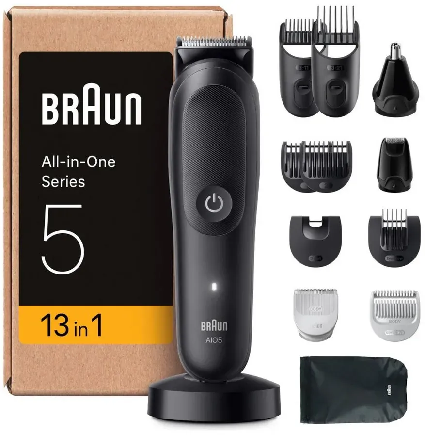 Barttrimmer Haarschneider Gesamtsortiment Beauty + Gesundheit Haushalt Beauty + Gesundheit Rasur + Haarentfernung Trimmer + Haarschneider Elektrische Rasierer, Trimmer & Epilatoren - EAN:7500435244992 - Der Braun Barttrimmer Series 5 wurde speziell für präzise Kontrolle entwickelt, um die individuelle Pflegeroutine zu optimieren. Mit seiner ultrascharfen Klinge sorgt er bei jedem Zug für einen gleichmässig getrimmten Bart - ganz ohne Fehler. Die praktische Feststelltaste und die Auswahl aus 40 Längeneinstellungen in 0,5 mm Schritten gewährleisten eine makellose Stylingkontrolle. Mit diesem Premium-Trimmer lassen sich Trimm-, Kontur- und Detailarbeiten durchführen, um perfekte Linien, Übergänge und Abschlüsse zu erzielen. Langlebig und wasserdicht gebaut, bietet er eine beeindruckende Laufzeit von bis zu 120 Minuten dank seines leistungsstarken Li-Ion Akkus. Packungsinhalt: 1 Barttrimmer, 3 Kammaufsätze, 1 Reinigungsbürste. - gefunden von Kelkoo Dieses Multigroom-Set ist ideal für alle, die ein Gerät für verschiedene Styling-Bedürfnisse suchen. ![]() ![]()