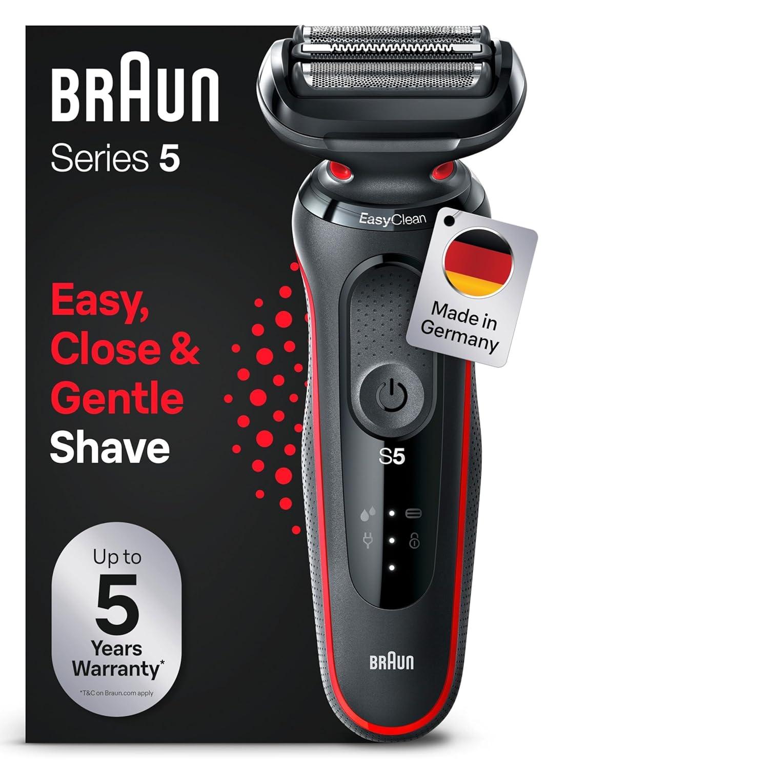 Auf Lager Versand durch AmazonBraun Series 5 Rasierer Herren Elektrisch, Elektrorasierer mit 50 Min. Akku, EasyClean, Rasierapparat, Trockenrasierer, Wet & Dry, Wasserdicht, Made in Germany, 51-R1000s, Rot