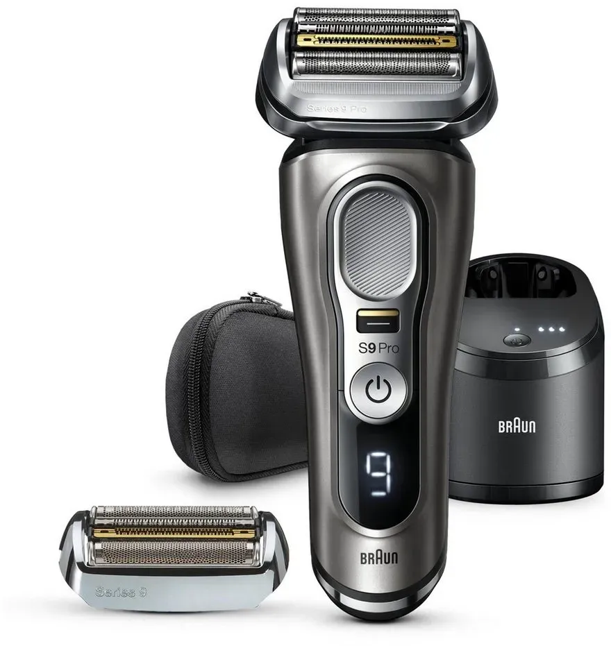 Braun - EAN: 8700216594622 - Der Braun Series 9 Pro ist Testsieger bei Stiftung Warentest mit einer Gesamtnote von 1,6. Der effizienteste elektrische Rasierer von Braun wurde neu erfunden, um noch besser zu sein. Der Series 9 Pro Elektrorasierer ist effizient und sanft, egal ob Sie einen 1-, 3- oder 7-Tage-Bart haben. Der Rasierer für Herren ist mit dem einzigartigen ProLift Trimmer ausgestattet, der lange und flach anliegende Haare anhebt und schneidet. Dieser Trockenrasierer verfügt über eine 5-in-1 Reinigungsstation, die Ihren Rasierapparat hygienisch reinigt, sodass er jeden Tag wie neu funktioniert. Der Rasierer erfasst problemlos auch widerspenstige Haare, dank des neuen Präzisionsschalters, der besonders praktisch in schwer zugänglichen Bereichen ist. Im Lieferumfang enthalten: 1x elektrischer Rasierer, 1x zusätzlicher Scherkopf, 1x 5-in-1 Reinigungsstation, 1x Reinigungskartusche, 1x Leder-Reise-Etui, 1x Reinigungsbürste, 1x Netzteil, 1x Benutzerhandbuch. - bei galaxus.de - aus Yadore Produktdaten Dieses Angebot ist empfehlenswert, da es den Rasierer inklusive eines zusätzlichen Ersatzscherkopfes zu einem guten Preis anbietet. kaufland.d e Braun Series 9 Pro 9465cc inkl. zusätzlicher Ersatzscherkopf Herrenrasierer