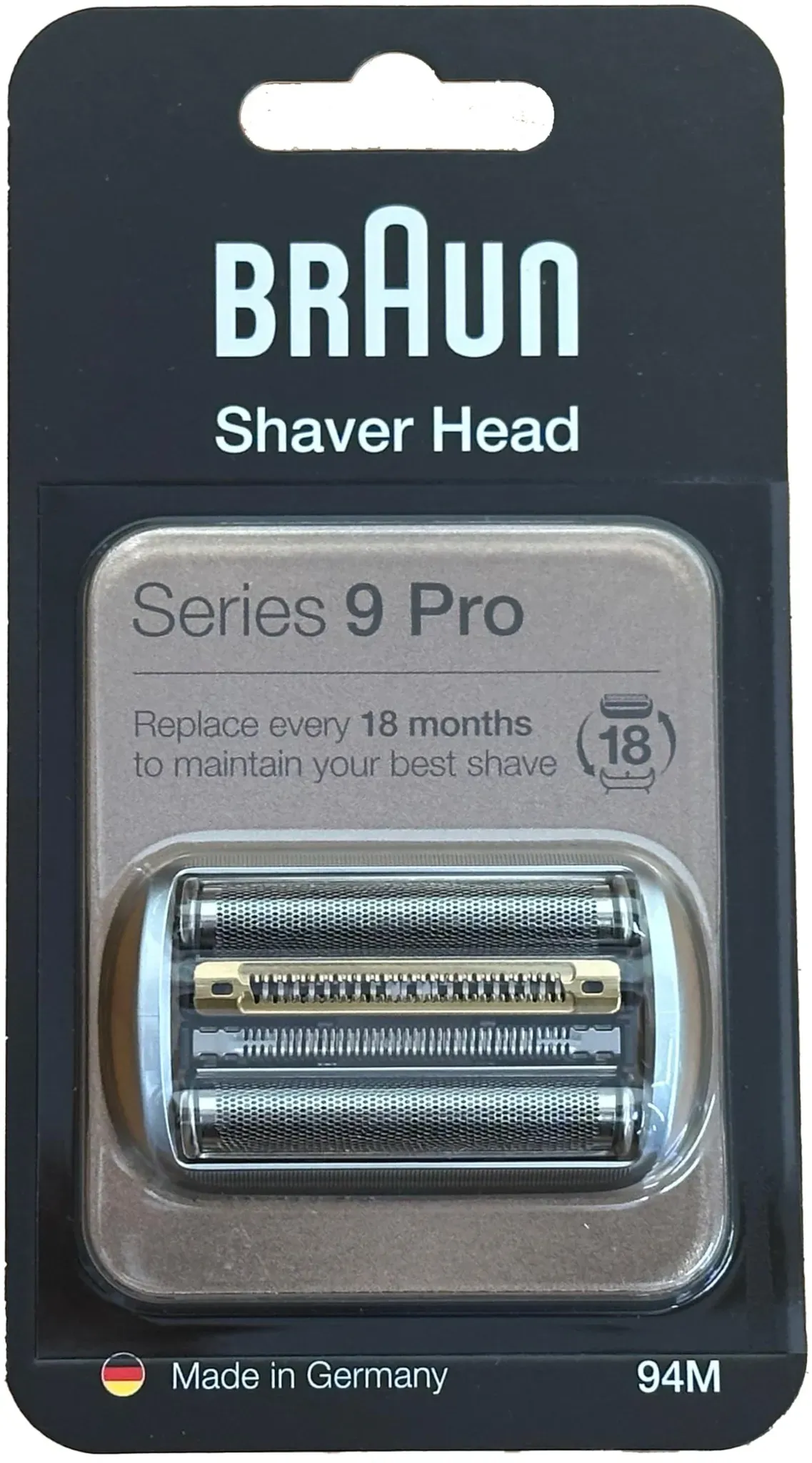 Zustand: Neu - Folienrasierer Folienrasierer für Herren - Braun P&G - 94M - EAN: 0069055889756 - Spitzenleistung: Um deine beste Rasur zu erhalten, empfehlen wir, den Series 9 Pro-Kopf alle 18 Monate auszutauschen. Der Kopf der Series 9 Pro erfasst mehr Haare bereits beim ersten Zug und sorgt so für eine außergewöhnlich sanfte Rasur. Ziel auf einen perfekt rasierten Abendbart: Der Pro-Kopf mit unserer einzigartigen ProBlade schneidet Haare auf unter 0,05 mm - für eine besonders enge und sanfte Rasur, die lange anhält. Einfacher Austausch: Befestige deinen neuen Rasierkopf einfach durch anklicken. Hochwertige Verarbeitung: Zu 100 % in Deutschland hergestellt und kompatibel mit den Braun Series 9 Pro und Series 9 Rasierern. Inklusive 1 x Series 9 Pro Rasierkopf-Ersatz, Silber. - bei Amazon.de Dieses Angebot ist für eine Overseas Version des Scherkopfes, was eine interessante Alternative sein kann. ![]() ![]() Braun Brown Shaver Ersatzklinge Series 9 Pro 94M (Overseas Version bis F/C94M) Mesh Blade Innenklinge Integrierte Kassette