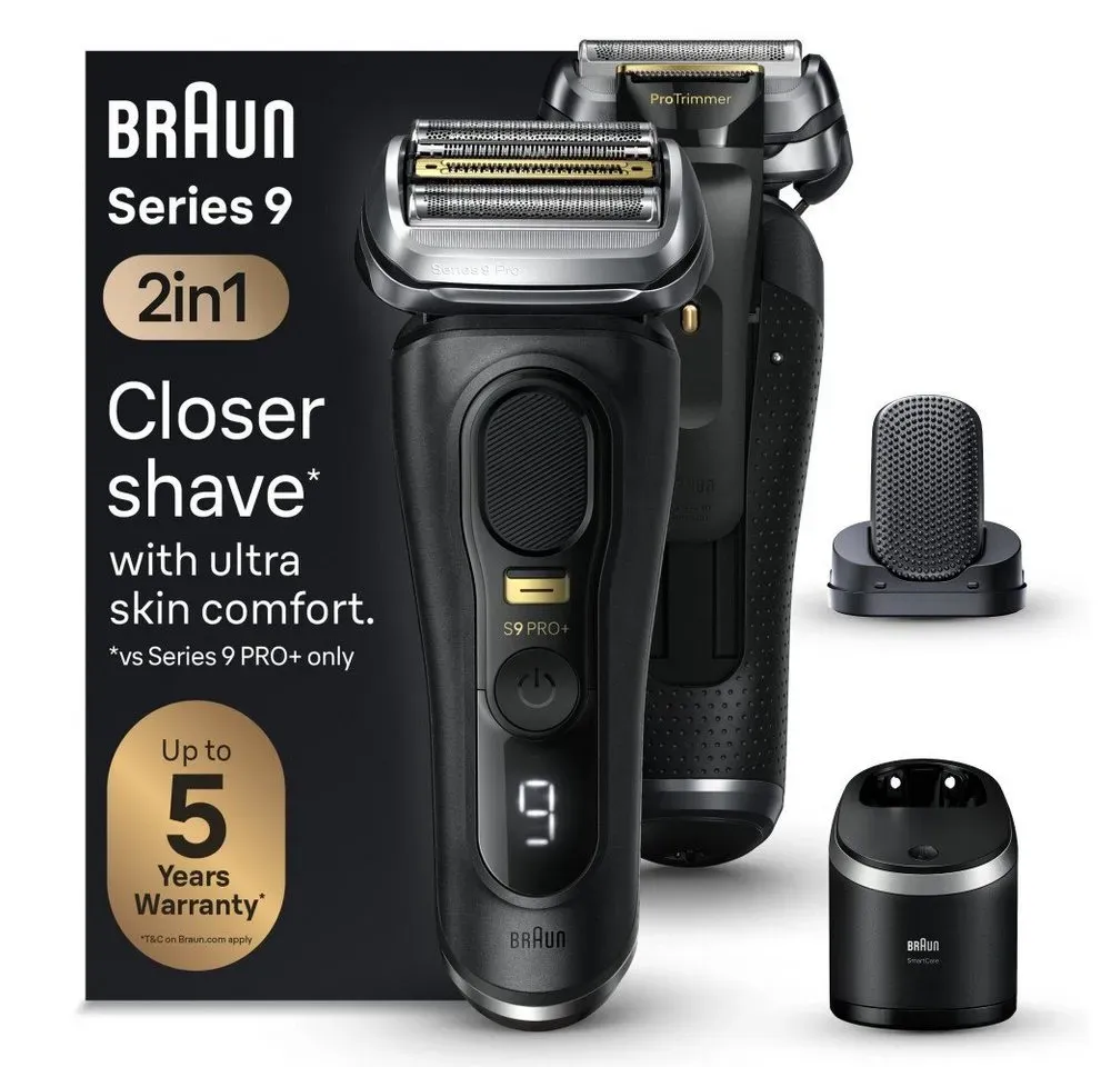Zustand: Neu - Folienrasierer Folienrasierer für Herren - Braun Procter & Gamble - 9677cce 8700216554015 - EAN: 8700216554015 - Perfekte Gründlichkeit bei jedem Zug: Braun's bester Rasierer mit 5+1 perfekt synchronisierten Rasiererelementen, um selbst die dichtesten Bärte bei jedem Zug sanft zu schneiden Außergewöhnlicher Hautschutz: Ultradünne Präzisionsklingen rasieren effizienter als jeder vorherige Series 9 Rasierer, für außergewöhnlichen Hautschutz Maximale Effizienz bei jeder Bartdichte: Die Pro-SensoAdapt Technologie mit hochpräzisen Sensoren analysiert Ihre Bartdichte 300x pro Sekunde und passt die Rasierleistung automatisch an Premium-Zubehör: 6-in-1 SmartCare Center für einen Rasierer, der sich jeden Tag wie neu anfühlt Hergestellt in Deutschland: Der Rasierer aus hochwertigen Materialien mit Liebe zum Detail; 100% wasserdicht für die Nass- & Trockenrasur; Bis zu 60 Min. Akkulaufzeit Mit bis zu n (es gelten die AGB auf der Braun Webseite) - bei Amazon.de ![]() ![]() Braun Series 9 Pro+ 9590cc