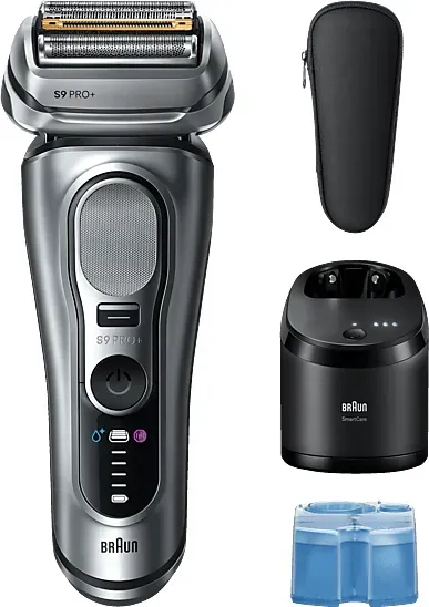 Auf Lager Versand durch AmazonBraun Series 9 Pro+ Rasierer Herren Elektrisch, Elektrorasierer mit 5 Rasierelementen, ProComfort Aufsatz, Rasierapparat, 2-in-1-System, Reinigungsstation, 60 Min Akku, Made in Germany, 9597cc, Silber