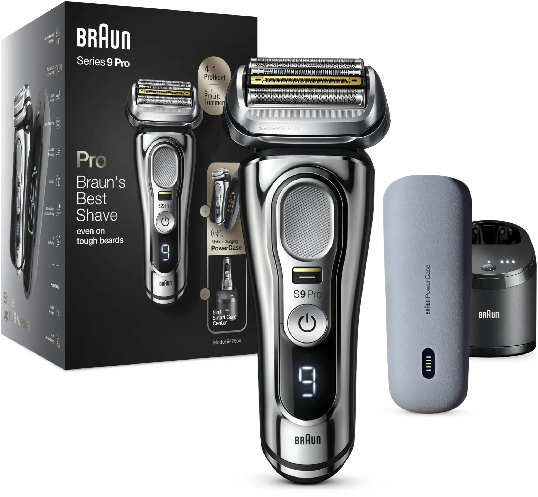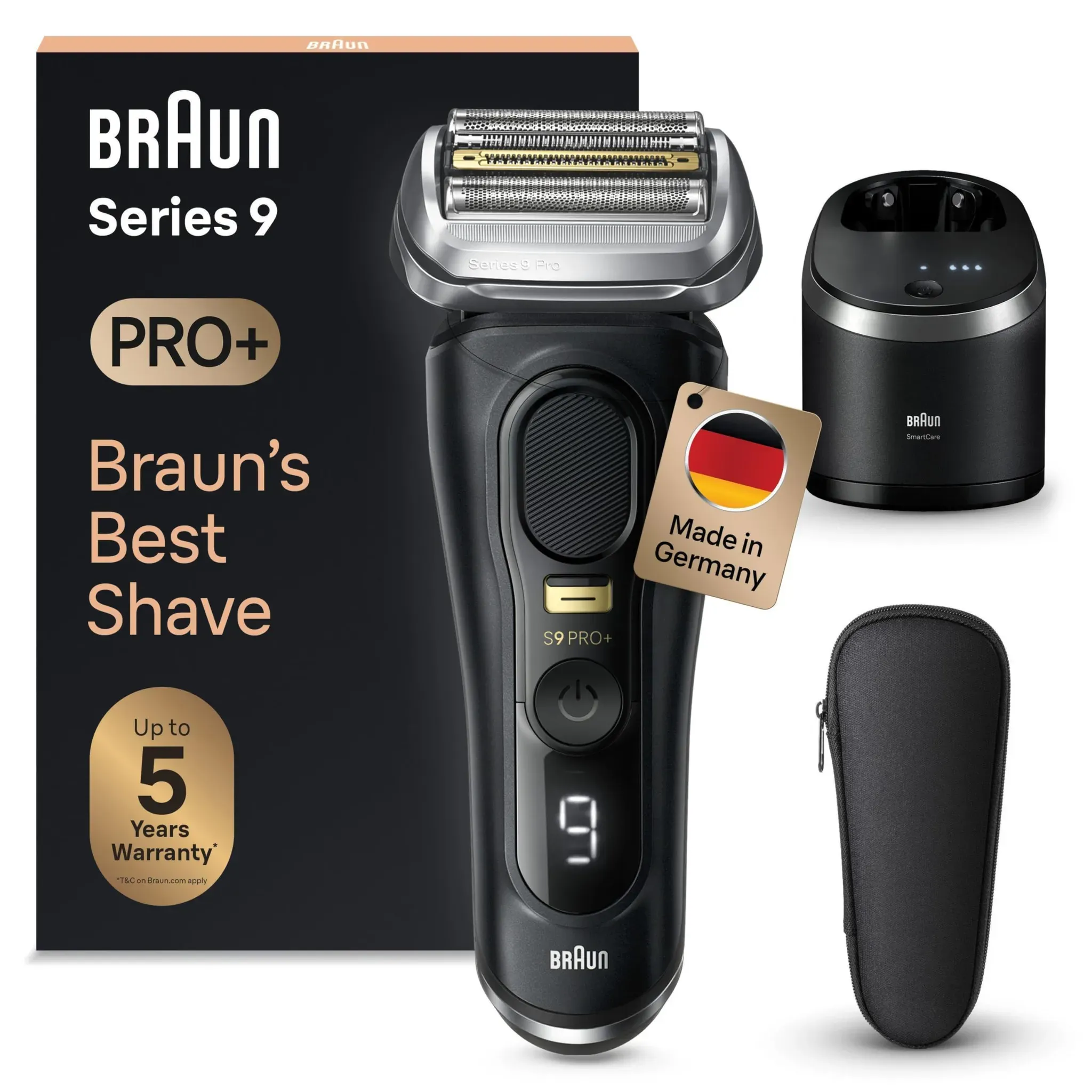 Auf Lager Versand durch AmazonBraun Series 9 Pro+ Rasierer Herren Elektrisch, Elektrorasierer mit 5 Rasierelementen, Rasierapparat, Langhaarschneider ProTrimmer, Ladestation, 60 Min Akku, Wet&Dry, Made in Germany, 9510s, Schwarz