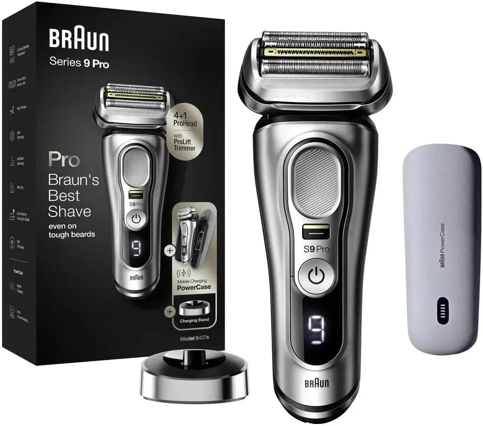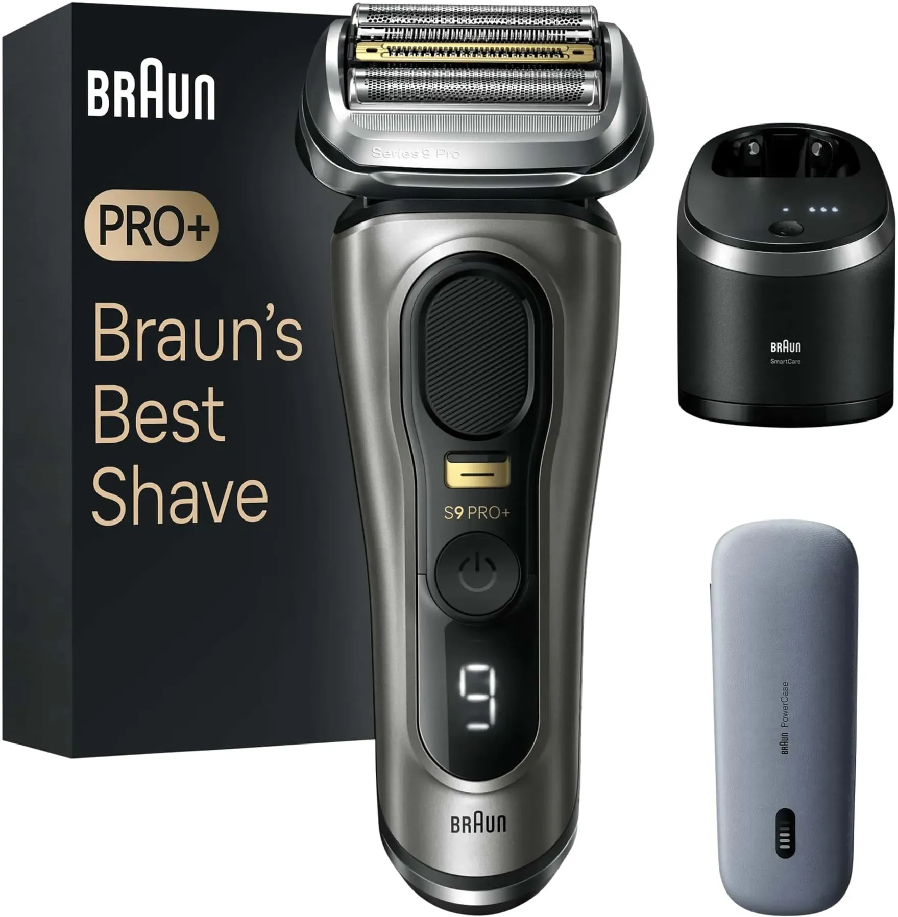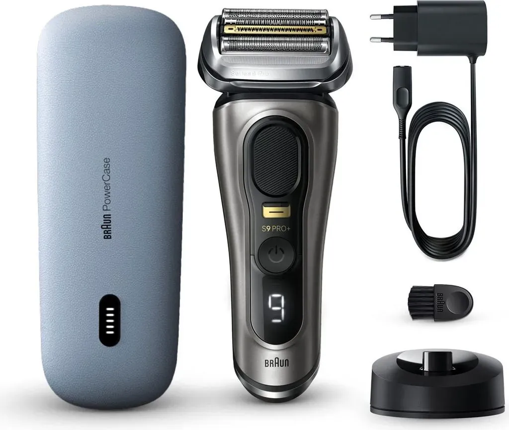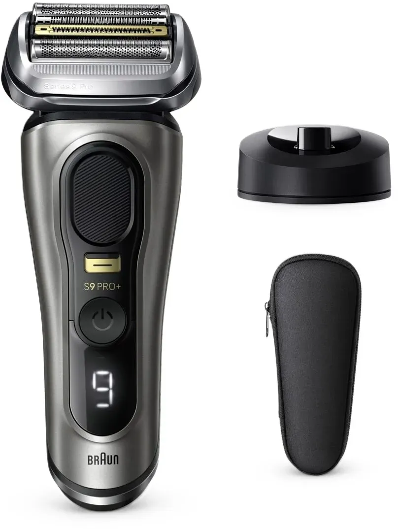 Barttrimmer Elektrische Rasierer Gesamtsortiment Beauty + Gesundheit Haushalt Beauty + Gesundheit Rasur + Haarentfernung Rasierapparat Elektrische Rasierer, Trimmer & Epilatoren - EAN:8700216594622 - Der Braun Series 9 Pro ist Testsieger bei Stiftung Warentest mit einer Gesamtnote von 1,6. Der effizienteste elektrische Rasierer von Braun wurde neu erfunden, um noch besser zu sein. Der Series 9 Pro Elektrorasierer ist effizient und sanft, egal ob Sie einen 1-, 3- oder 7-Tage-Bart haben. Der Rasierer für Herren ist mit dem einzigartigen ProLift Trimmer ausgestattet, der lange und flach anliegende Haare anhebt und schneidet. Dieser Trockenrasierer verfügt über eine 5-in-1 Reinigungsstation, die Ihren Rasierapparat hygienisch reinigt, sodass er jeden Tag wie neu funktioniert. Der Rasierer erfasst problemlos auch widerspenstige Haare, dank des neuen Präzisionsschalters, der besonders praktisch in schwer zugänglichen Bereichen ist. Im Lieferumfang enthalten: 1x elektrischer Rasierer, 1x zusätzlicher Scherkopf, 1x 5-in-1 Reinigungsstation, 1x Reinigungskartusche, 1x Leder-Reise-Etui, 1x Reinigungsbürste, 1x Netzteil, 1x Benutzerhandbuch. - gefunden von Kelkoo Dieses Series 9 Pro+ Modell bietet eine Reinigungsstation und ist ein guter Mittelweg. ![]() ![]() Braun Series 9 Pro+ 9575cc