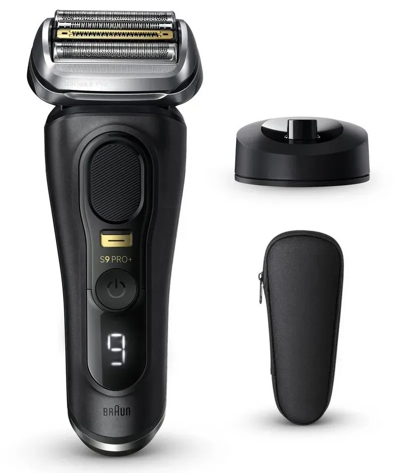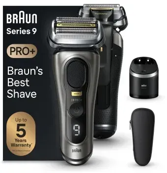 Kategorie: Elektrische Rasierer - Braun - GTIN:7500435218023 - Braun Series 9 Pro+ 9510s Nass- und Trockenrasierer mit Folie Key Features Ultra-nahe Rasur: Ausgestattet mit 5 fortschrittlichen Rasierelementen für maximalen Hautkontakt und Effizienz. ProTrimmer mit Chirurgenstahl: Entwickelt für präzises Trimmen, selbst bei dichten oder langen Bärten. AutoSense-Technologie: Passt die Leistung automatisch an die Bartdichte an - für optimale Leistung bei jedem Zug. Nass- und Trockenrasur: Das 100% wasserdichte Design ermöglicht die Rasur mit Schaum, Gel oder unter der Dusche. Leistungsstarker Akku: Bis zu 60 Minuten kabellose Rasur mit einem leistungsstarken Li-Ion-Akku. Deutsche Ingenieurskunst: Gebaut für die Ewigkeit mit erstklassiger Qualität und präziser Handwerkskunst. - 220,00 Euro bei Sinu24 - gefunden von billiger.de Dieses Modell bietet eine gute Balance aus Leistung und Preis für einen Series 9 Pro+ Rasierer mit Ladestation. ![]() ![]() Braun Series 9 Pro+ Rasierer Herren Elektrisch, Elektrorasierer mit 5 Pro Rasierelementen, Langhaarschneider ProTrimmer, Ladestation, 60 Min Laufzeit, Wet & Dry, Made in Germany, 9517s, Silber