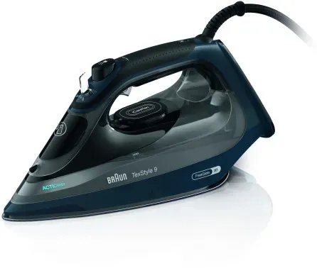 Auf Lager Versand durch AmazonBraun TexStyle 9 SI9682 DB Dampfbügeleisen mit FreeGlide 3D Technologie, Vertikaldampf, Anti-Tropf-Funktion, Selbstreinigungsfunktion, 330 ml Einfüllöffnung, 260 g/min, 3200W, Dunkelblau