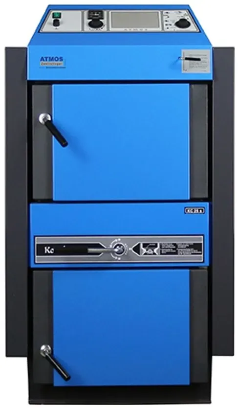 EEK: C - Kategorie: Brennwertkessel und Heizkessel - Atmos - GTIN:4250775430175 - ATMOS Kohlevergaserkessel - der Allesfresser unter den Kesseln Die ATMOS KC Serie zeichnet sich als eine herausragende Wahl für moderne Heizanwendungen aus. Mit ihrer Fähigkeit, sowohl Kohle als auch Holz effizient zu verbrennen, bietet sie eine vielseitige Lösung, die den aktuellen Anforderungen an Umweltschutz und Effizienz entspricht.Details des Kessels keramische Brennkammer mit drehbarem Gussrostdurch Sekundärluftvorwärmung optimale Verbrennung bereits in der Anheizphase und schnelle Leistungserzielunghoher Wirkungsgrad bis 86 %Gussrost sitzt in einer keramischer Schale - neue Konstruktion speziell für die Vergasung von Braunkohlebrikettseinfache Reinigung der Brennkammer sowie des Abgaskanalsmit RohrwärmetauscherBraunkohlebrikettsSteinkohle (NUR KC35S/45S)Holz (max. 10 %)Die ATMOS KC Serie präsentiert sich als die Lösung für die Anforderungen an einen vielseitigen Heizkessel, der mit unterschiedlichen Brennstoffen betrieben werden kann. Angesichts der aktuellen Bundesimmissionsschutzverordnung müssen viele veraltete Gusskessel wie der GK21, GK31 oder der K30 Kohlekessel durch moderne Alternativen ersetzt werden. Besonders in solchen Situationen erweist sich die ATMOS KC Serie als die ideale Wahl.Die KC Serie bietet die Möglichkeit, neben Kohle auch effizient mit Holz zu heizen. Dies bedeutet, dass neben Kohle auch Holzspäne und kleinere Holzabfälle (bis zu 10 % des Brennstoffs) zur ... Der ATMOS Kohlevergaserkessel KC45S ist eine leistungsstarke Option für größere Heizbedürfnisse und kann sowohl Braunkohle als auch Steinkohle verbrennen. ![]() ![]() ATMOS Kohlevergaserkessel | KC45S | Braunkohle/Steinkohle | 45 kW