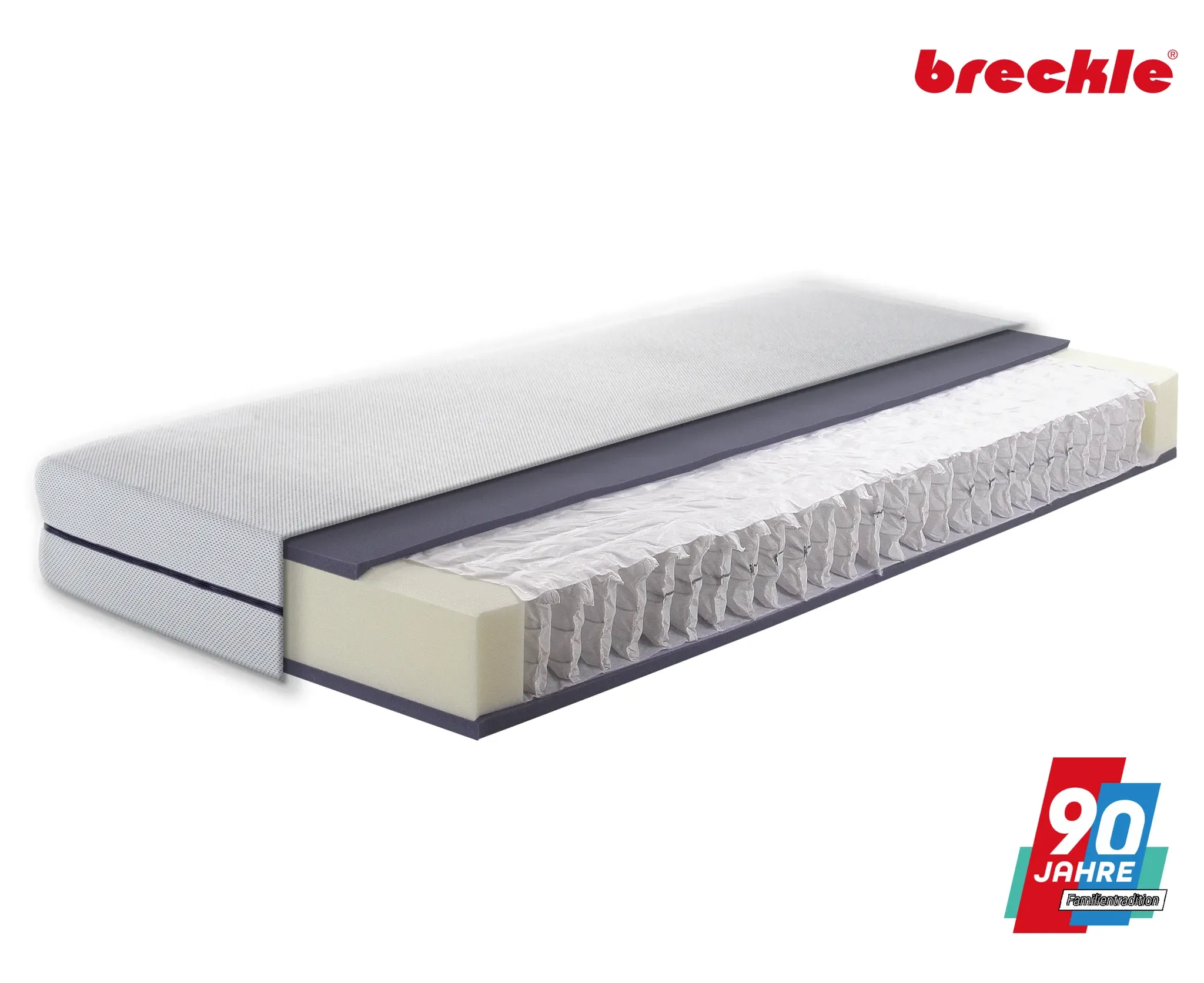 BRECKLE LEDERCOLLECTION - Breckle Matratze Flex Air ; 7-Zonen Taschenfederkern Entdecke besten Schlafkomfort mit der Flex Air Matratze von Breckle dem Testsieger im Frühjahr 2025 der Stiftung Warentest. Mit innovativer 7-Zonen-Technologie, optimaler Luftzirkulation und perfekter Körperanpassung bietet sie ergonomischen Liegekomfort für jede Schlafposition. Atmungsaktiv, langlebig und Made in Germany die Flex Air überzeugt ganz klassisch. Punktelastischer, 7-Zonen-Taschenfederkern bietet einen stabilen Halt. Die einzeln in Vlies verpackten Federn können sich einzeln bewegen und sich so der Körperergonomie perfekt anpassen. Die Komfortpolsterung besteht beidseitig aus hochwertigem Kaltschaum. Für alle Körpertypen und Liegegewohnheiten geeignet. Durch den symmetrischen Aufbau kann man die Matratze beliebig drehen und wenden, was herstellerseitig auch zur gleichmäßigen Abnutzung empfohlen wird. Taschenfederkernmatratzen sind durch den inneren Hohlraum besonders gut belüftet. Testurteil GUT - von Stiftung Warentest und damit Testsieger im Feld Breckle Flex Air von der Stiftung Warentest in der Ausgabe 03/2025 mit dem Ergebnis 'Gut' (2,2) bewertet. Getestet wurde die Matratze in der Größe 90x200 cm und im Härtegrad 3 -mittel. Mesh - Bezug Offenes Gewebe mit vielen kleinen Löchern- das sorgt für ausgezeichnete Luftzirkulation. Kühles; angenehmes Schlafklima, da Wärmestau und Feuchtigkeit vermieden wird. Dank seiner Struktur lässt Mesh Schweiß und Feuchtigkeit schnell verdunsten, ... Dieses Angebot ist das günstigste für eine Breckle Flex Air Matratze in der Größe 80x200 cm. ![]() ![]() Taschenfederkernmatratze Flex Air, Breckle, 19 cm hoch, (1-tlg) weiß 80 cm x 200 cm x 19 cm