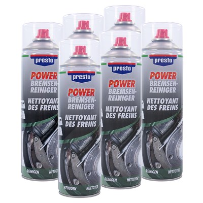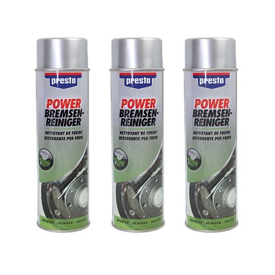 Kategorie: Autoreinigung & Pflege - Ravenol - GTIN:4014835300576 - RAVENOL Bremsen-Reiniger besteht aus einem azetonfreien Lösemittelgemisch, das hochwirksam Bremsen, Bremsbeläge und Kupplungsteile entfettet und reinigt. Die Ravensberger Schmierstoffvertrieb GmbH ist heute ein Global Player. Die RAVENOL-Produkte sind Premium Produkte Made in Germany . Mit höchster Produktzuverlässigkeit und bestem Service aus Deutschland seit 1946. - 3,95 Euro bei Amazon Marketplace Automotive - gefunden von billiger.de Dieses 2er-Pack Presto Power Bremsenreiniger ist eine praktische Option für den gelegentlichen Gebrauch. ![]() Presto 2x 600ml Power Bremsenreiniger [Hersteller-Nr. 307287]