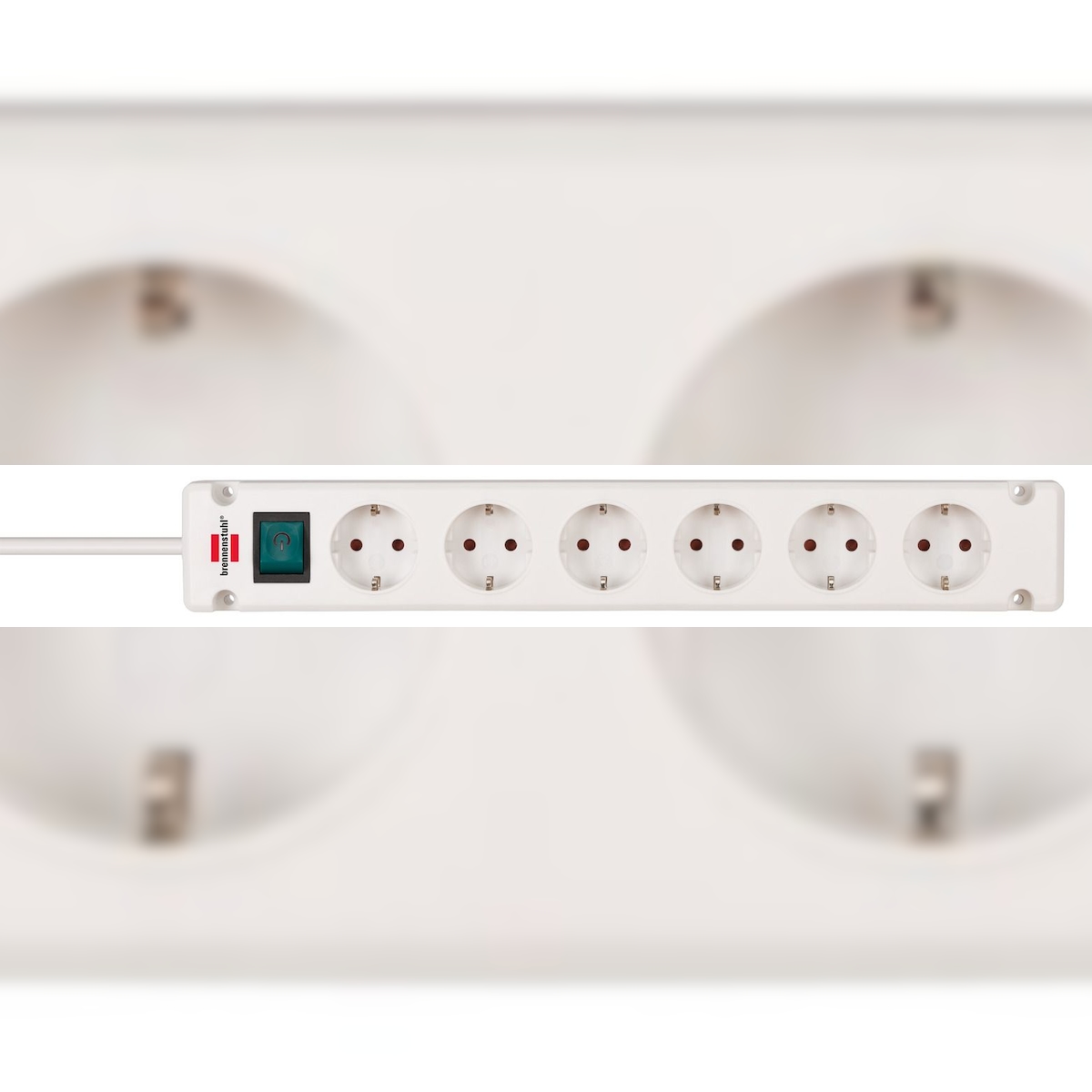 Auf Lager Versand durch AmazonBrennenstuhl Bremounta Steckdosenleiste 6-Fach mit Schalter (Mehrfachsteckdose mit 90 Grad Steckdosen, Steckerleiste mit Befestigungsmöglichkeit und 3m Kabel) weiß