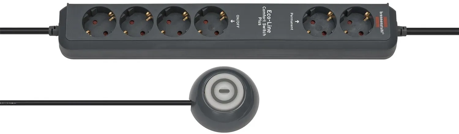 ![]() ![]() Brennenstuhl Eco-Line Comfort Switch Plus Steckdosenleiste 6-Fach (Mehrfachsteckdose mit 2 permanenten und 4 schaltbaren Steckdosen, beleuchteter Fußschalter) anthrazit