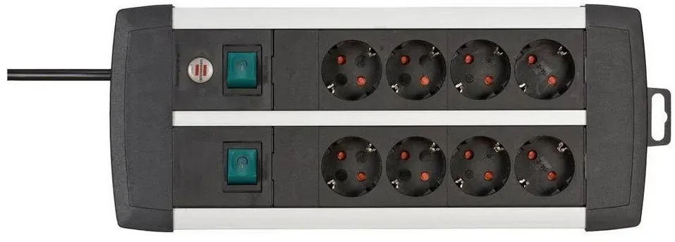 lieferbar-in 2-3 Werktagen bei dirBrennenstuhl Premium-Alu-Line Technik Steckdosenleiste, 8-fach Steckdosenleiste (Kabellänge 3.00 m), erhöhter Berührungsschutz, mit 2 Schalter, mit Hängelasche schwarz|silberfarben