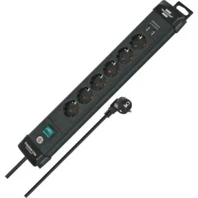 Überspannungsschutz u. Ausfallsicherung Elektronik und elektronische Komponenten - EAN:4007123662975 - brennenstuhl Premium-Line 6-fach Steckdosenleiste mit Schalter 3,0 m schwarz mit USB-Buchse: die erste Wahl für eine organisierte StromversorgungDie brennenstuhl Premium-Line 6-fach Steckdosenleiste mit Schalter 3,0 m schwarz mit USB-Buchse bietet Ihnen eine Reihe Standardsteckdosen für den gleichzeitigen Anschluss Ihrer elektrischer Verbraucher im Büro oder zu Hause. Mit dem Schalter können Sie allen Steckdosen gleichzeit die Spannung nehmen und Ihre Geräte so vom Netz trennen.Diese Eigenschaften überzeugenHier sehen Sie praktische Produktmerkmale zusammengefasst: mit erhöhtem Berührungsschutz, mit Schalter. Mit dem Berührungsschutz ist sichergestellt, dass nur bei Einführen beider Steckerkontakte Stromfluss erfolgt.Alles drinDie solide brennenstuhl Steckdosenleiste mit Schalter Premium-Line hat verschiedene Buchsentypen und zwar Schukobuchsen und USB-Buchsen. Smartphones, Tablets oder Kopfhörer lassen sich z.B. einfach direkt an die USB-Buchse anschließen - ohne zusätzliches Netzteil. Die Buchsen sind in einem Winkel von 45° positioniert und auch bei voller Belegung problemlos erreichbar.Das Kabel: nicht zu kurz und nicht zu langSie erhalten bei diesem Modell ein 3,0 m langes Kabel des Typs H05VV-F3G1,5 mit einem Leiterquerschnitt von 1,5 mm². Diese Kombination gewährleistet eine zuverlässige Stromzufuhr bei gleichzeitig guter Flexibilität.So wird das Exemplar ... Dieses Modell bietet USB-Ladefunktion und ist eine gute Wahl für Nutzer, die sowohl Steckdosen als auch USB-Anschlüsse benötigen. ![]() ![]() Brennenstuhl Premium-Line Steckdosenleiste mit USB-Ladefunktion 6-fach schwarz 3m H05VV-F 3G1,5