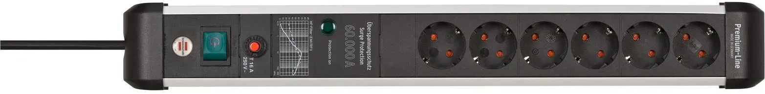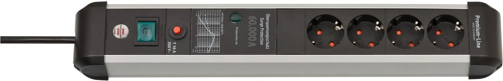 lieferbar-in 5-6 Werktagen bei dirBrennenstuhl Premium-Protect-Line - Steckdosenleiste - silber/schwarz Steckdosenleiste schwarz|silberfarben