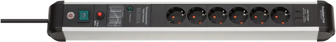 keine Angabe Versand durch AmazonBrennenstuhl Premium-Protect-Line Steckdosenleiste 6-Fach mit USB und Überspannungsschutz (Mehrfachsteckdose mit Schalter, 3m Kabel und 2-Fach USB 3,1 A, Made in Germany) Silber/schwarz