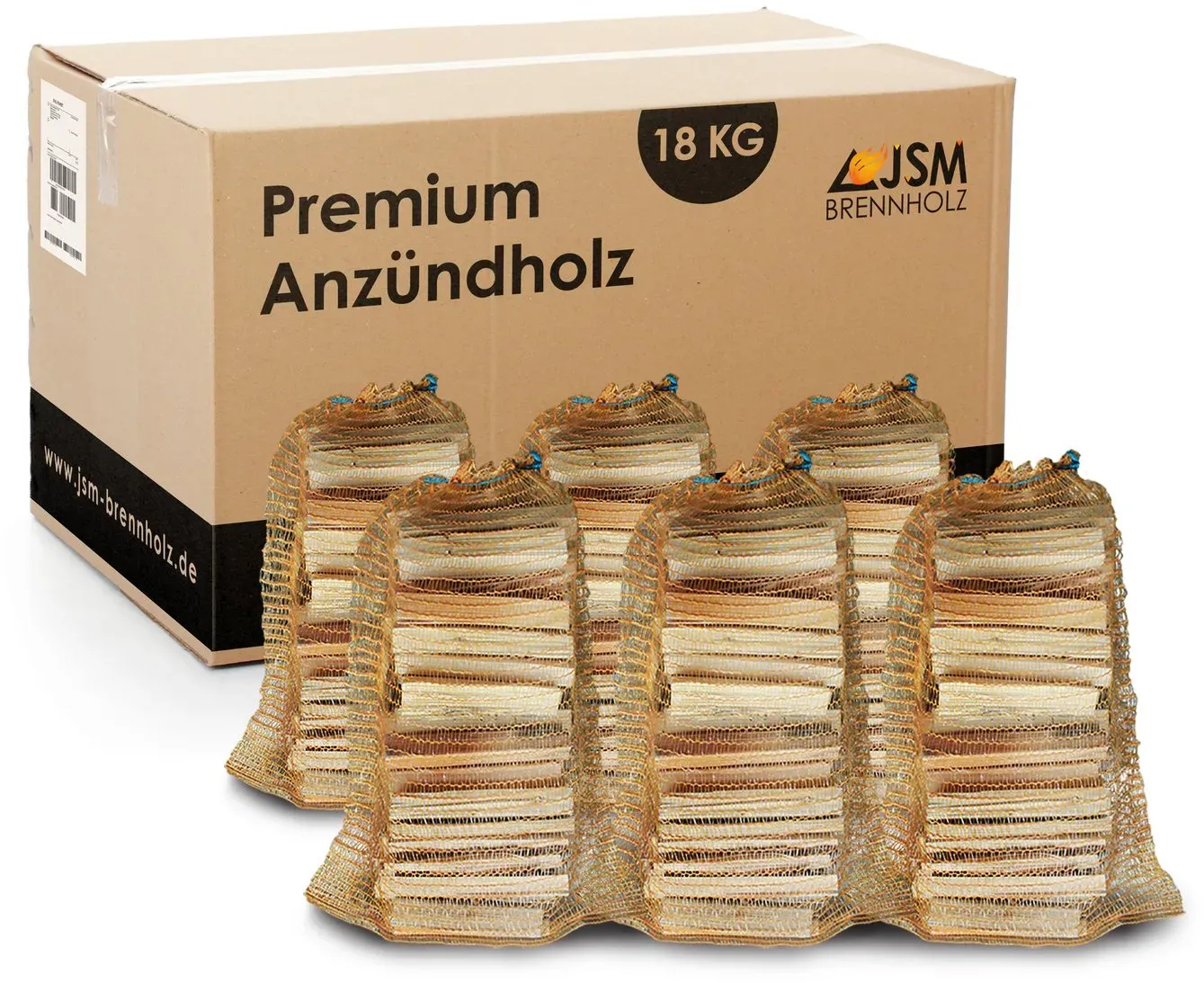 lieferbar-in 5-6 Werktagen bei dirJSM-Brennholz Kaminholz Anzündholz 6 Netze a 3 Kg Anmachholz Anfeuerholz, 18 kg, Sofort einsatzbereit Trockenes, vorgespaltenes Anzündholz