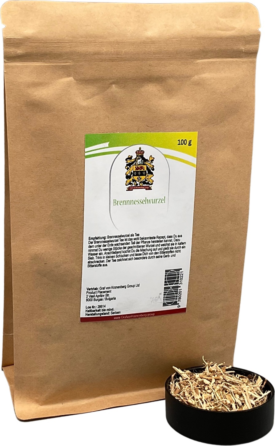 EAN: 4260705960184 - Brennnesselwurzel - Vielseitige Anwendungsmöglichkeiten für Gesundheit und WohlbefindenBrennnesselwurzel: Ein überblickDie Brennnesselwurzel wird von ernährungsbewussten Menschen geschätzt und gehört zu den Pflanzen, von denen in der natürlichen Kräuterkunde alles verwendet werden kann, angefangen bei der Wurzel bis hin zu den Stängeln, Laubblättern und den Samen.Wichtigkeit der Brennnesselwurzel'Dem Manne kann geholfen werden.' Die Bedeutung der Brennnesselwurzel wurde bereits von Hildegard von Bingen erkannt, und auch heute noch spielt sie eine entscheidende Rolle in der natürlichen Kräuterkunde und gilt als Kraut, das in Form von Tees und Tinkturen, von Essenzen und in gemahlener Form vielseitig verwendet wird.Vielfältige Anwendungen der BrennnesselwurzelZubereitung von Brennnesselwurzel-TeeDer Brennnesselwurzel-Tee ist eine der bekanntesten Anwendungen, die man aus dem unter der Erde wachsenden Teil der Pflanze herstellen kann. Dabei werden wenige Stücke der geschnittenen Wurzel in kaltem Wasser eingeweicht und anschließend aufgekocht. Durch ein Sieb abgießen und in kleinen Schlucken genießen. Der Tee zeichnet sich besonders durch seine Gerb- und Bitterstoffe aus. Immer mit sprudelnd kochendem Wasser aufgießen und 5-10 Minuten ziehen lassen!Verwendung in der KücheNeben der Zubereitung als Tee kann die Brennnesselwurzel auch in der Küche vielseitig eingesetzt werden. In gehackter oder gemahlener Form verleiht sie einen leicht herben, aber angenehmen ... ![]() ![]() (50,45 EUR/kg) - Brennnesselwurzel geschnitten eBay (100g)