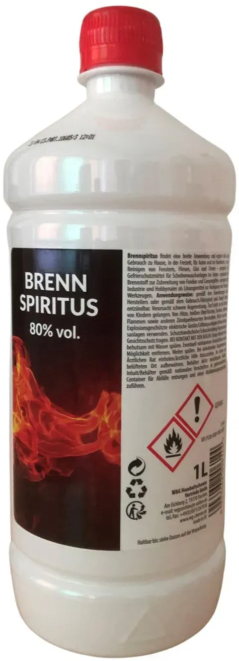 Kategorie: Reinigungsmittel - DC DruckChemie GmbH - GTIN:0721058921139 - DC DruckChemie GmbH Brennspiritus 10L, 99% + Auslaufhahn - Alleskönner für Haushalt, Freizeit & Handwerk - Reinigungs Spiritus, Kaminbrennstoff - 41,00 Euro bei Amazon Marketplace Health & Personal Care - gefunden von billiger.de Dieses 15x 1L-Angebot von Höfer Chemie ist eine gute Wahl für mittelgroße Mengen und bietet eine hohe Reinheit von 94%. ![]() ![]() Höfer Chemie 15x 1 L Brennspiritus 94% in Flaschen