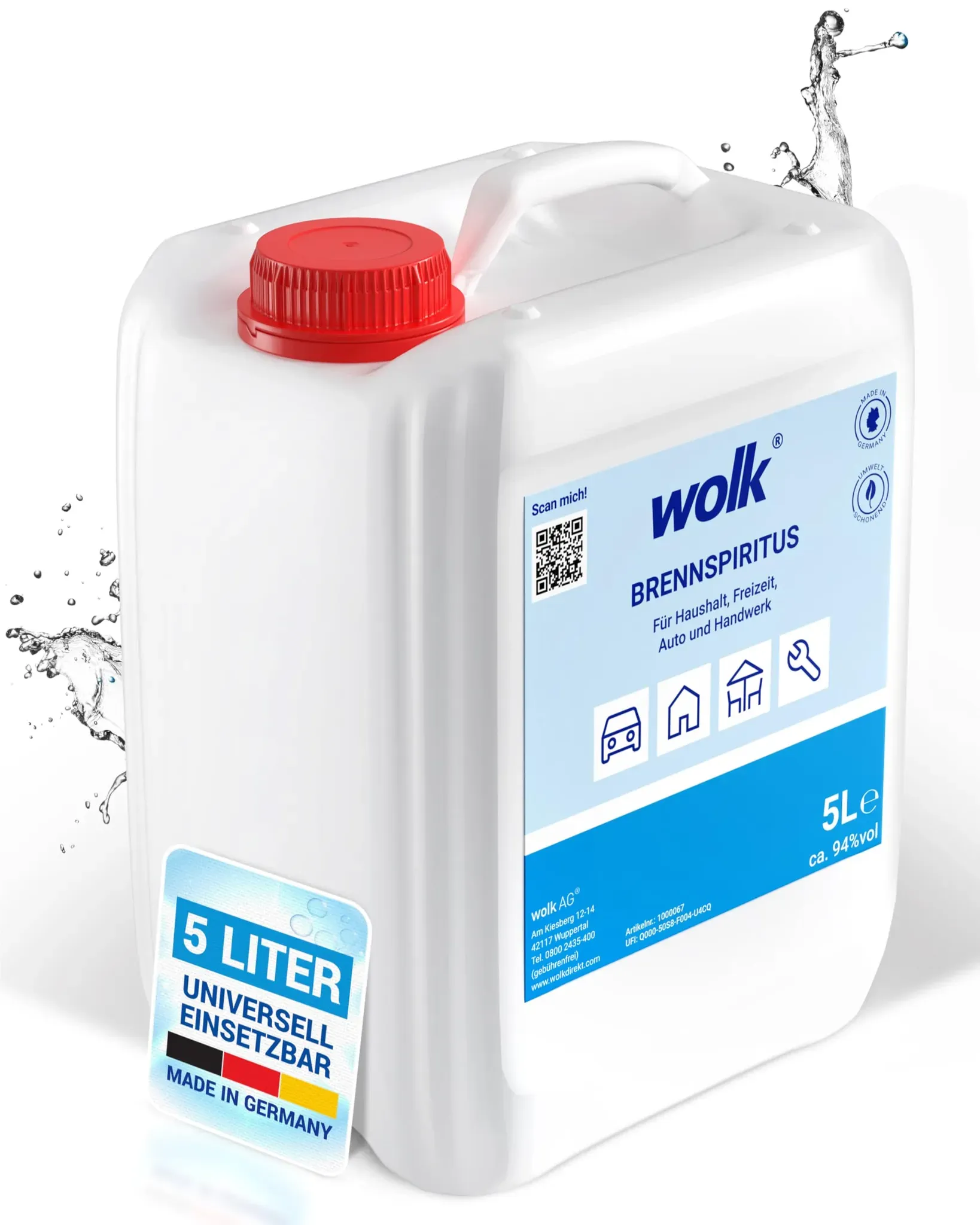 Kategorie: Reinigungsmittel - AHK Spiritus - GTIN:5305407314855 - Brand: AHK Spiritus Brennspiritus 1 L Spiritus geruchsfrei Premium AHK Bioalkohol Made in Germany Product Type: CLEANING_AGENT Size: 1 l (1er Pack) - 9,70 Euro bei Amazon Marketplace Home Improvement - gefunden von billiger.de Für Nutzer mit höherem Verbrauch ist dieser 5-Liter-Kanister von WOLK eine kostengünstige Option. ![]() ![]() WOLK Brennspiritus 5 Liter ca. 94% vol CA-NR. 64-17-5 UN1170 Für Haushalt, Freizeit, Auto & Handwerk