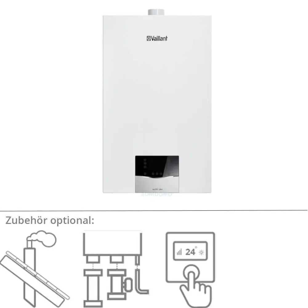 Vaillant - EAN: 4024074921036 - Vaillant Gas-Brennwert-Kombitherme ecoTEC plus VCW 20/26CS/1-5 Der ecoTEC plus VCW 1-5 ist das ideale Gas-Brennwert-Kombigerät mit integrierter Warmwasserbereitung für Einfamilienhäuser und Mehrfamilienhäuser. Auch die Kombination mit einer Wärmepumpe zu einem nachhaltigen Hybridsystem ist möglich.Dieses Gas-Brennwertgerät punktet nicht nur mit seinem Top-Preis-Leistungs-Verhältnis. Wasserstoff und Bio-Erdgas gleich mitgedacht Da Gas als Brückentechnologie in einer Zukunft mit nachhaltigen Energien weiterhin eine wichtige Rolle spielt, ist unser ecoTEC plus auf alles vorbereitet. Das innovative Gas-Brennwertgerät ist schon jetzt für den Betrieb mit bis zu 20 % Wasserstoff oder bis zu 100 % Bio-Erdgas geeignet. Zudem ist es zu einem späteren Zeitpunktumrüstbar auf den Betrieb mit 100 % Wasserstoff*und erfüllt so die aktuellenH2 Ready-Anforderungen des Gebäudeenergiegesetzes (GEG). Das dafür notwendige Umrüstkit wird ab 2026 erhältlich sein. Technik, die mitdenkt Unsere innovative Verbrennungsregelung IoniDetect sorgt für einen besonders zuverlässigen und effizienten Betrieb. Das Geheimnis: Die Technologie erkennt automatisch unterschiedliche Erdgasarten und Gasqualitäten und optimiert so das Gas-Brennwertsystem permanent selbst. So sind Sie auf die in einigen Teilen Deutschlands anstehende Umstellung von L-Gas auf H-Gas perfekt vorbereitet. Produktvorteile: Normnutzungsgrad 98 % (Hs) / 109 % (Hi) Modulation bis zu 1:8 Selbstadaptierende ... Dieses Vaillant ecoTEC plus Modell ist eine leistungsstarke Option für Haushalte mit höherem Warmwasserbedarf. ![]() ![]() Vaillant Gas Brennwert Kombigerät ecoTEC plus VCW 20/26 CS/1-5 Heiztherme