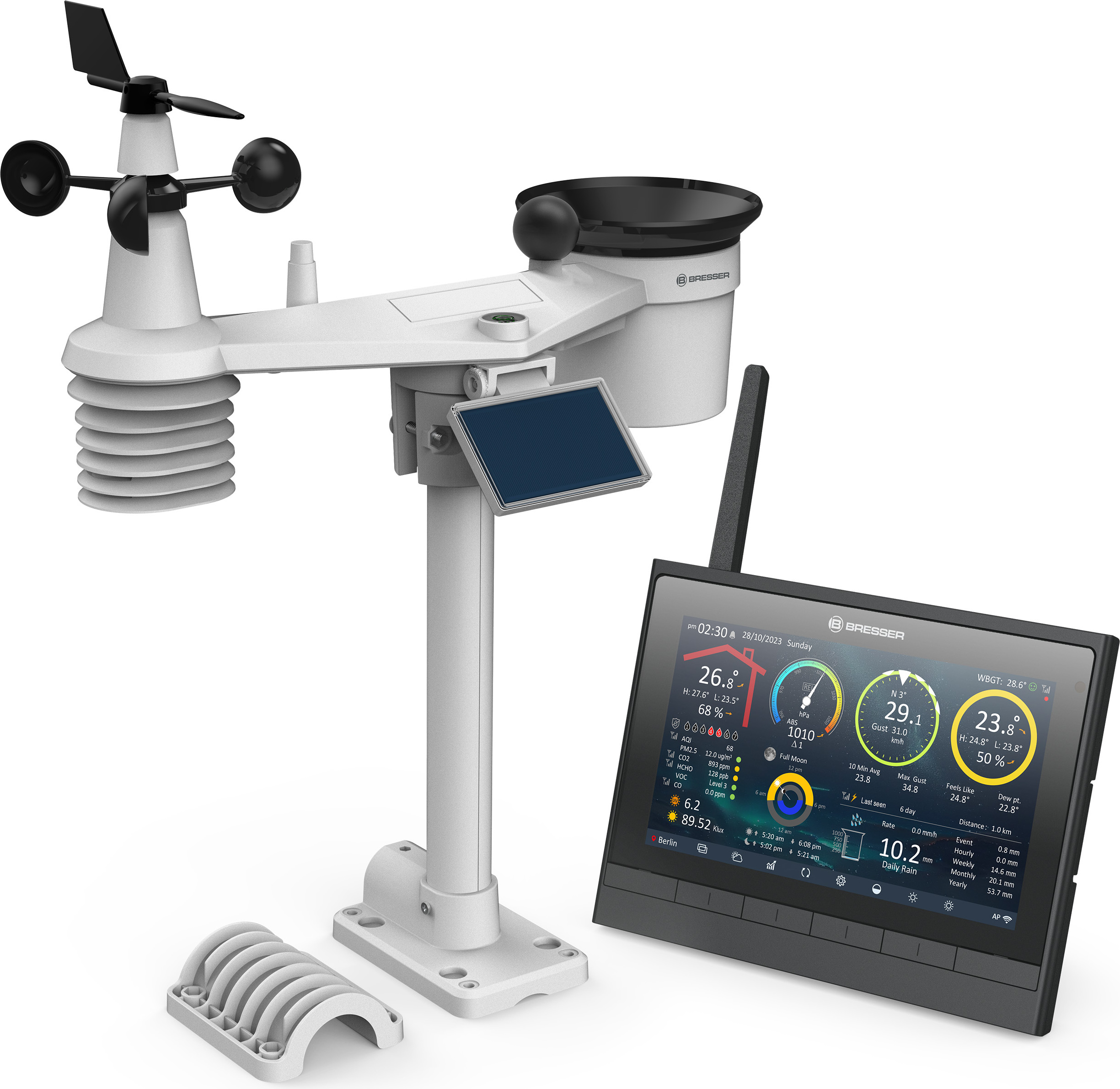 Auf Lager Versand durch AmazonBresser 9-in-1 MeteoChamp HD WLAN-Wetterstation mit solarbetriebenem Multisensor, Luftqualitätsanzeige, Hitzestress-Index, Datenspeicher