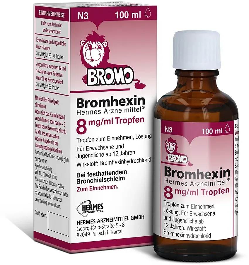 Sofort lieferbar, 1-2 Werktage (versandfertig)BROMHEXIN Hermes Arzneimittel 8 mg/ml Tropfen 100 ml