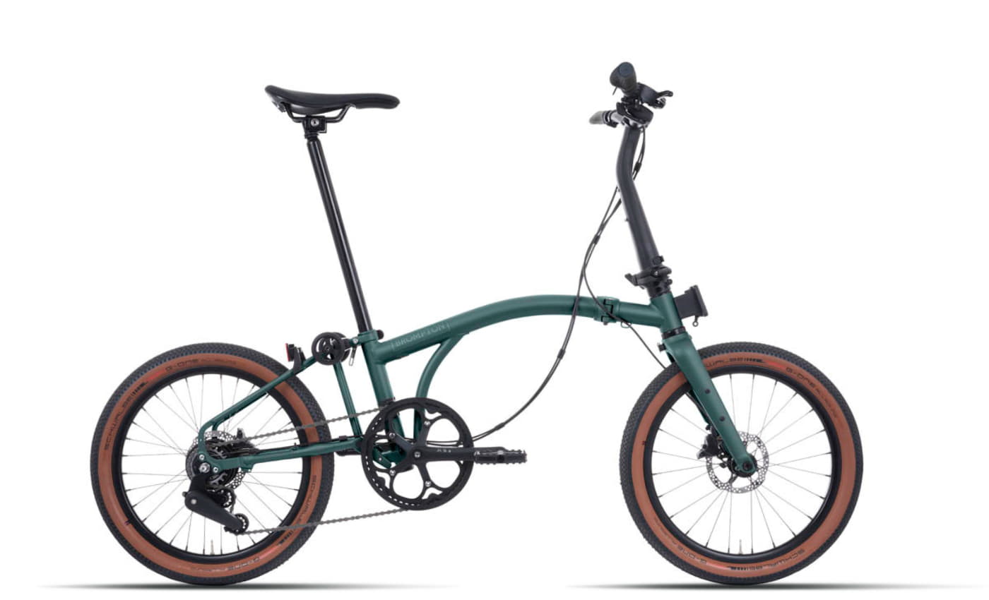 Brompton - Brompton G-Line Forest Green Das Brompton G-Line in Forest Green ist das vielseitigste Faltrad seiner Klasse gebaut für Stadt, Land und Abenteuer. Mit seiner durchdachten Konstruktion, dem legendären Brompton-Faltmechanismus und einer hochwertigen 8-Gang-Schaltung bietet es grenzenlose Mobilität auf kleinstem Raum. Kompakt, elegant und bereit für alles Ob in der Stadt oder auf Tour das G-Line überzeugt durch sein kompaktes Design und sein stabiles Fahrverhalten. Der handgelötete Stahlrahmen sorgt für Langlebigkeit und ein geschmeidiges Fahrgefühl, während sich das Rad in weniger als 20 Sekunden zu einem kleinen, transportfähigen Paket zusammenfalten lässt. Perfekt für Bahn, Auto oder Camper und überall dort, wo Platz kostbar ist. Vielseitig und komfortabel Die Shimano Alfine 8-Gang-Nabenschaltung bietet präzise Gangwechsel und wartungsarme Zuverlässigkeit. Hydraulische Scheibenbremsen von Tektro ren maximale Sicherheit und Kontrolle, auch bei Nässe oder auf unebenem Untergrund. Die breiten Schwalbe G-One Allround Reifen (20' 2,1') bieten optimalen Grip und Komfort auf Asphalt wie auf Schotterwegen. Durchdacht bis ins Detail Das Brompton G-Line ist auf maximale Vielseitigkeit ausgelegt. Dank der integrierten Befestigungspunkte kannst du Gepäckträger, Schutzbleche, Taschen oder das praktische Brompton Toolkit nachrüsten. Ergonomische Griffe, ein komfortabler Superlight Sattel und Schnelllösepedale machen das Bike alltagstauglich und reisetauglich zugleich. ... Dieses Brompton G Line in Adventure Orange (2025) ist ein aktuelles Modell, das eine gute Verfügbarkeit und moderne Spezifikationen bietet. ![]() ![]() Brompton G Line - 20 Zoll 8K Faltrad - Adventure Orange (2025) (S)