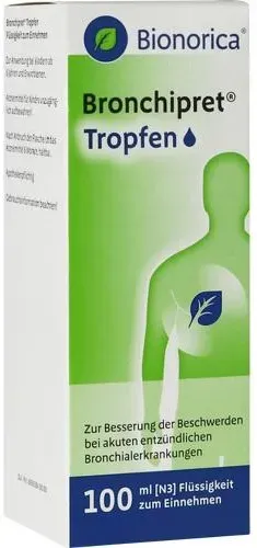 Verfügbarkeit: ca. 1-2 Werktage - 149.10 € / 1 l - Kategorie: Arzneimittel - Bionorica - GTIN:4150115358100 - PZN:11535810 - 11535810: Bionorica SE - BRONCHIPRET Tropfen 100 ml - 14,91 Euro bei ayvita.de - gefunden von billiger.de ![]() ![]() Bionorica BRONCHIPRET Tropfen 100 ml