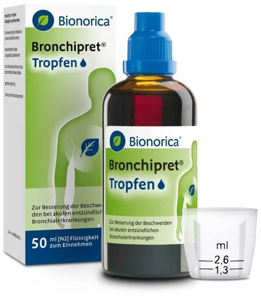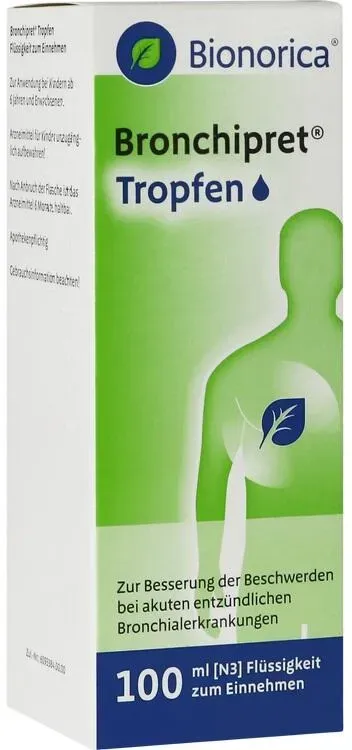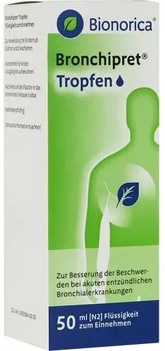 Zustand: Neu - 77,60 € / l - Rezeptfreie Medikamente - Bronchipret Hersteller: Bionorica SE, Deutschland (Originalprodukt) - 5566232 -5566232 - EAN: 4150055662329 - STARK BEI HUSTEN: Die kraftvolle Kombination aus Thymian und Efeu in Bronchipret Saft TE lässt Hustenbeschwerden schneller und nachhaltig zurückgehen - in allen Phasen der akuten Bronchitis. 3-FACH EFFEKT BEI AKUTER BRONCHITIS: Bronchipret Saft TE beruhigt hartnäckigen Husten, löst festsitzenden Schleim und bekämpft die Entzündungsbeschwerden in den Bronchien. UNGESTÖRTER SCHLAF: Die abendliche Einnahme von Bronchipret Saft TE unterstützt eine erholsame Nachtruhe. Der beigefügte Messbecher vereinfacht die bedarfsgerechte Dosierung je nach Altersgruppe. FÜR KINDER AB : Der pflanzliche Hustensaft ist sehr gut verträglich und zudem zuckerfrei. Mit seinem natürlich guten Geschmack wird er von den Kleinen auch sehr gut akzeptiert. NATÜRLICH UND VERTRÄGLICH: Glutenfrei, laktosefrei, vegan und zuckerfrei bietet Bronchipret Saft TE eine sehr gut verträgliche, pflanzliche Lösung zur Behandlung von Husten und akuter Bronchitis. - 21 Händler im amazon.de Marketplace Diese Bronchipret Tropfen in der 50 ml Größe sind zu einem guten Preis verfügbar. ![]() ![]() Bionorica Bronchipret Tropfen