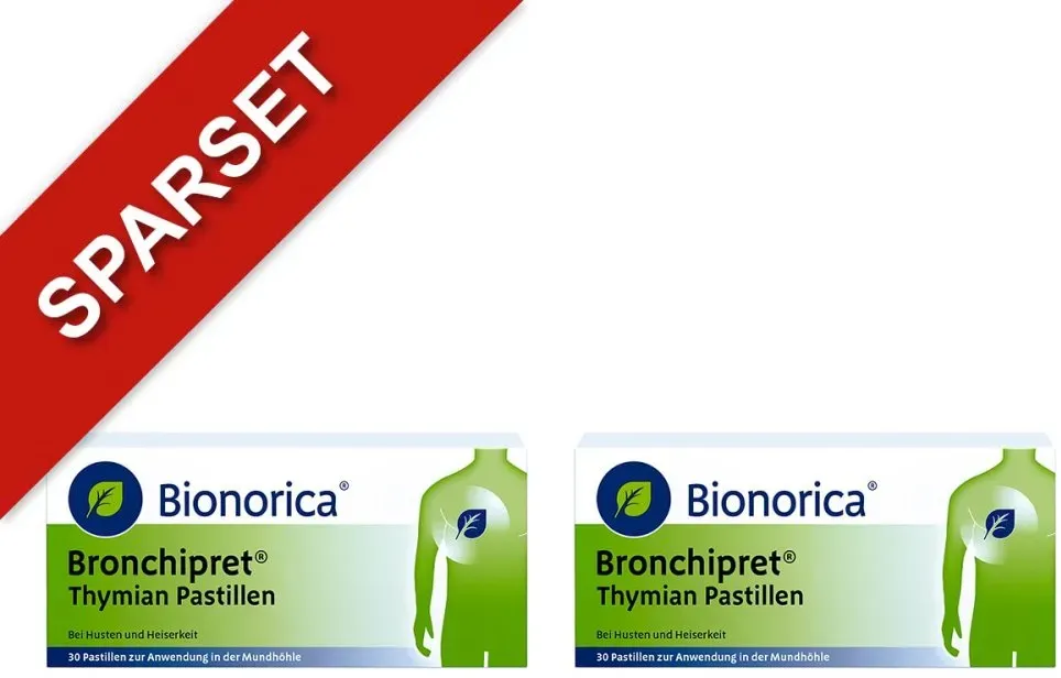 24 Händlerangebote bei billiger.de - Kategorie: Arzneimittel - Bionorica - Anwendungsgebiet von Bronchipret Thymian Efeu SaftStark bei Husten. Für Groß und Klein. Bronchipret Saft bietet eine schnelle, zuverlässige und süß schmeckende Hilfe gegen Husten bei Kindern.Wenn Kinder von Husten betroffen sind, hilft Bronchipret Saft schnell und zuverlässig. Der Hustensaft mit Thymian- und Efeu-Extrakten ist sehr gut verträglich, schmeckt süß und ist bereits für kleine Patientinnen und Patienten ab dem Alter von einem Jahr geeignet.Wirkungsweise von Bronchipret Thymian Efeu Saft Bronchipret Saft TE für schnellere Besserung der Beschwerden und erholsamen Schlaf Die kraftvolle Thymian-Efeu-Kombination sorgt für eine raschere und nachhaltige Reduktion der Beschwerden. Bronchipret Saft TE ist glutenfrei, laktosefrei, vegan und zuckerfrei, was ihn sehr gut verträglich macht. Er eignet sich speziell für Kinder ab . Mit seinem natürlich guten Geschmack wird er auch sehr gut von den Kleinen akzeptiert. Dank des praktischen Messbechers lässt sich der Saft bedarfsgerecht und je nach Alter dosieren. Empfohlen wird die Einnahme dreimal täglich, morgens, mittags und abends pur oder mit etwas Wasser, zu den Mahlzeiten oder unabhängig davon. Abends eingenommen, unterstützt der Saft einen erholsamen Schlaf. Bei anhaltenden oder sich verschlimmernden Symptomen über eine Woche hinaus sollte ärztlicher Rat eingeholt werden. Bronchipret Saft TE hilft bei Bedarf und sollte in keiner Hausapotheke ... Ein sehr günstiges Angebot für die Bronchipret Thymian Pastillen. ![]() ![]() Bionorica Bronchipret Thymian Pastillen