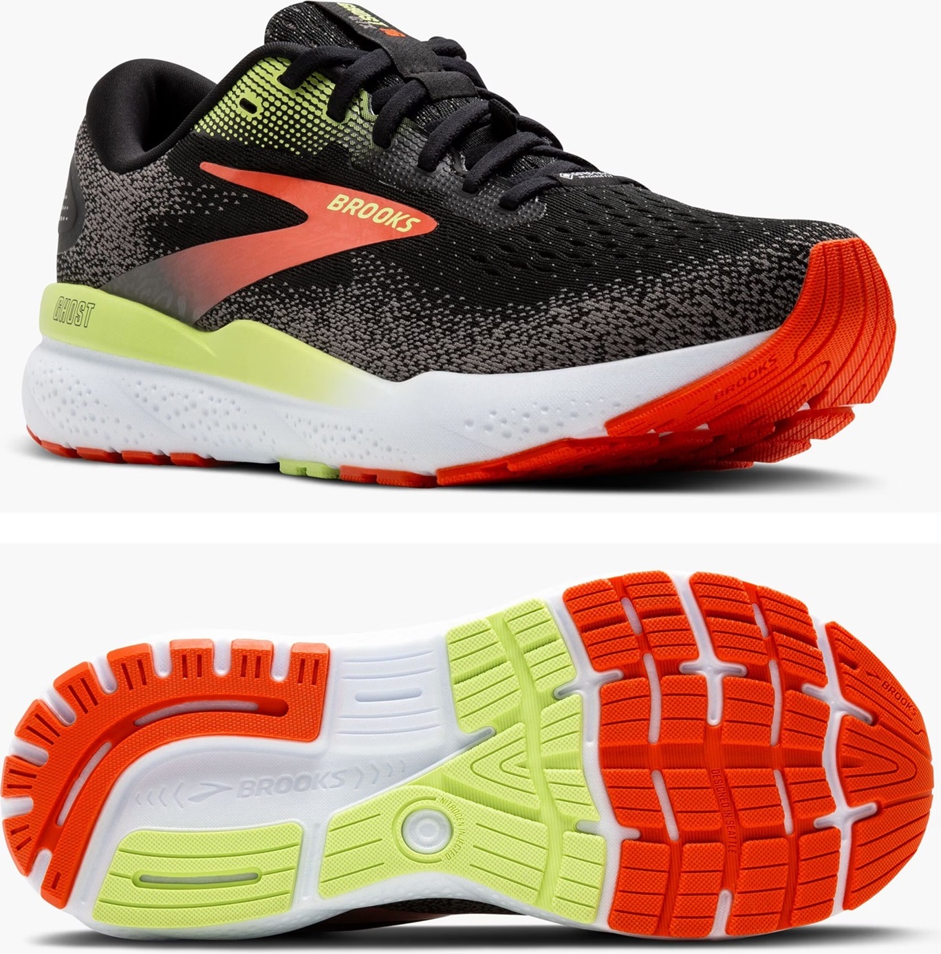 ![]() ![]() Brooks Herren Ghost 16 Laufschuhe Neutralschuh Black/Mandarin Red/Green - Schwarz 46