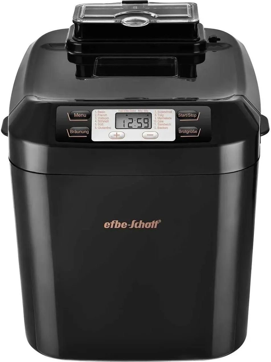 2 Händlerangebote bei billiger.de - Kategorie: Brotbackautomaten - efbe-Schott - Geniessen Sie Ihr Lieblingsbrot, wann immer Sie wollen! Der Jumbo-Brotbackautomat von efbe-Schott ist eine praktische Ergänzung in der Küche, um leckeres, frisches Brot für die ganze Familie zu backen. Die Brotbackform besteht aus einer hochwertigen Aluminiumlegierung und ist antihaftbeschichtet. Backform und Knethaken lassen sich entnehmen, was sowohl die Entnahme der Backwaren als auch die Reinigung des Gerätes vereinfacht. Dank des LCD-Displays können Sie kinderleicht den Jumbo-Brotbackautomaten bedienen. 12 Automatikprogramme ermöglichen die einfache und schnelle Zubereitung verschiedenster Brotsorten sowie Kuchen oder Gebäck. Die gewünschte Bräunung der Backwaren lässt sich dabei individuell einstellen, ebenso wie die Grösse von 650 g oder 800 g. Neben den praktischen Automatikprogrammen begeistert der SC BBA 1000 BK CP mit einem programmierbaren 13-Stunden-Verzögerungstimer und einer 60-Minuten-Warmhaltefunktion. - GTIN:4018243116385 ![]() ![]() TEFAL PF240E Pain & D lices (Brotbackautomat, Schwarz/Edelstahl)