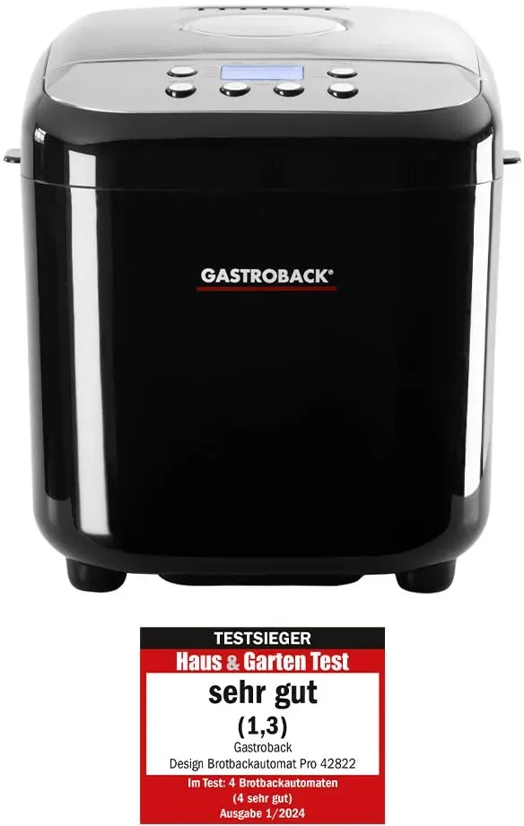 Zustand: Neu - Brotbackautomaten - GASTROBACK Gastroback - 42822 - EAN: 4016432428226 - Vielseitige Programme: Unser GASTROBACK Brotbackautomat bietet 19 Programme für Brot, Marmelade, Joghurt, Teig, Kuchen, Dessert, Anrösten und Reiswein Herausnehmbare Backform der Brotmaschine klappbar: Dank der Sol-Gel-Antihaftbeschichtung löst sich Ihr frisch gebackenes Brot mühelos aus der Form der Brotmaschine, ohne lästige Löcher im Brot Köstliche Marmelade und Joghurt: Mit dem Marmeladen- und Joghurt-Programm verwöhnen Sie sich mit selbstgemachten Köstlichkeiten. Ebenfalls können Sie Ihre Nüsse, Samen und Kerne dank des Gärautomat auf den Punkt rösten Smart, zeitgesteuert und warm gehalten: Planen Sie den Backbeginn mit Ihrer Brotmaschine bis zu 15 Stunden im Voraus, und genießen Sie bis zu 60 Minuten lang warmes, frisches Brot Lieferumfang: 1x GASTROBACK Brotbackautomat in der Produktgröße ca. 272 mm x 335 mm x 295 mm und aus hochwertigem Kunststoff inklusive Messbecher und Messlöffel - Verkäufer: e-joker im amazon.de Marketplace ![]() ![]()