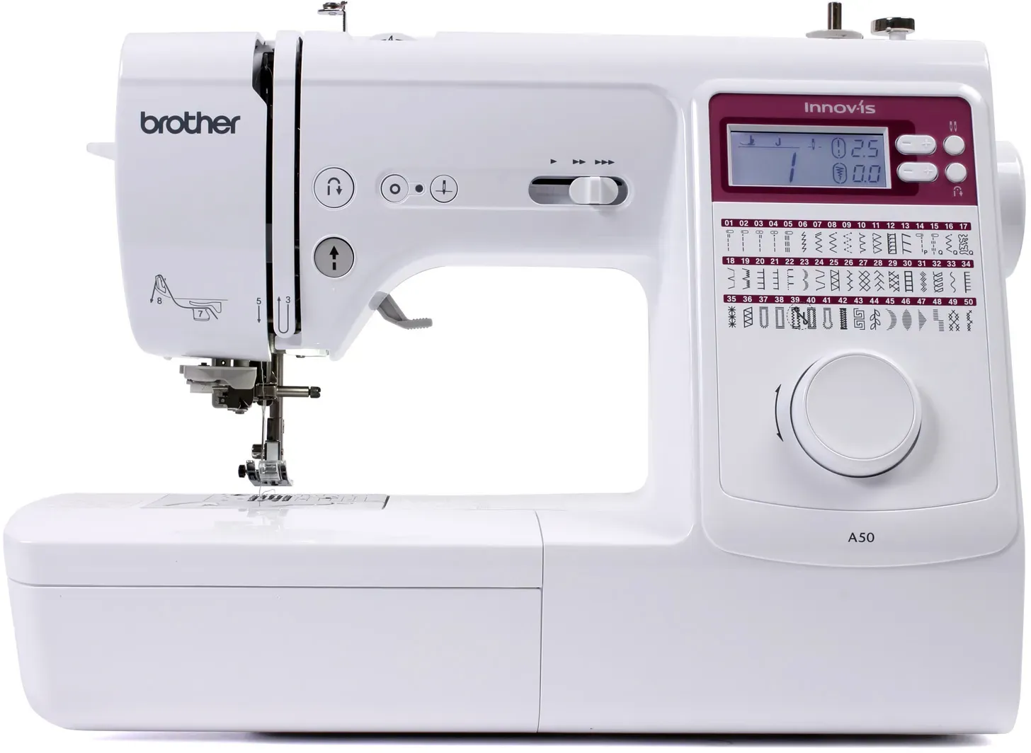 Kategorie: Nähmaschinen - Brother - GTIN:4977766792394 - Sie möchten noch schönere und anspruchsvollere Nähprojekte in die Tat umsetzen? Die Brother Innov-is A50 kann mit der eindrucksvollen Zahl von 50 einprogrammierten Nutz- und Dekorstichen aufwarten. So können Sie Ihrer Kreativität bei jedem Projekt von Mode-Kreationen bis Quilten freien Lauf lassen. über das intuitiv zu bedienende elektronische Funktionsrad können Sie einfach zwischen zahlreichen Sticharten wählen, die auf dem Display der Maschine angezeigt werden. Die Steuerung über praktische Tasten und ein großes, gut lesbares LC-Display ermöglichen einfache und präzise Einstellungen. Mit der Brother Innov-is A50 kommen Vielseitigkeit und Einfachheit in perfekter Harmonie zusammen. Wichtige Merkmale: 50 Stichprogramme, einschließlich fünf Knopflochvarianten Komfort-Nadeleinfädler Punktverriegelung Komfortable Spulenautomatik Stoppposition der Nadel (oben/unten) Stichlängen- und Stichbreitenregelung Start/Stopp-Taste Schieberegler für Geschwindigkeit Wahl des Nadelmodus (Zwilling / Einzel) Großes LC-Display - 441,15 Euro bei naehpark.com - gefunden von billiger.de Jetzt live Meta-Preisvergleich starten! Brother a50 Testberichte